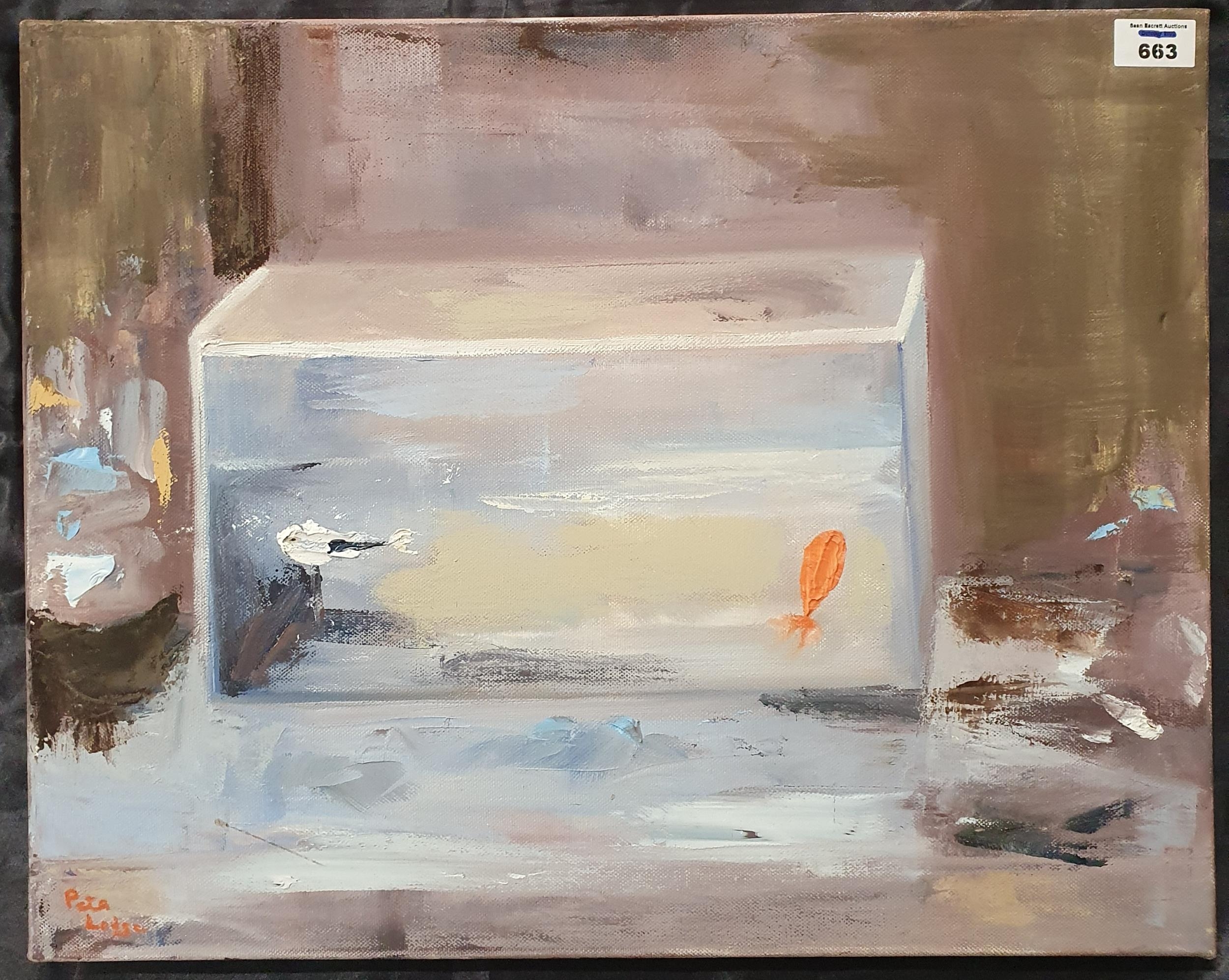 An abstract Oil On Canvas, signed Pete L 2002.