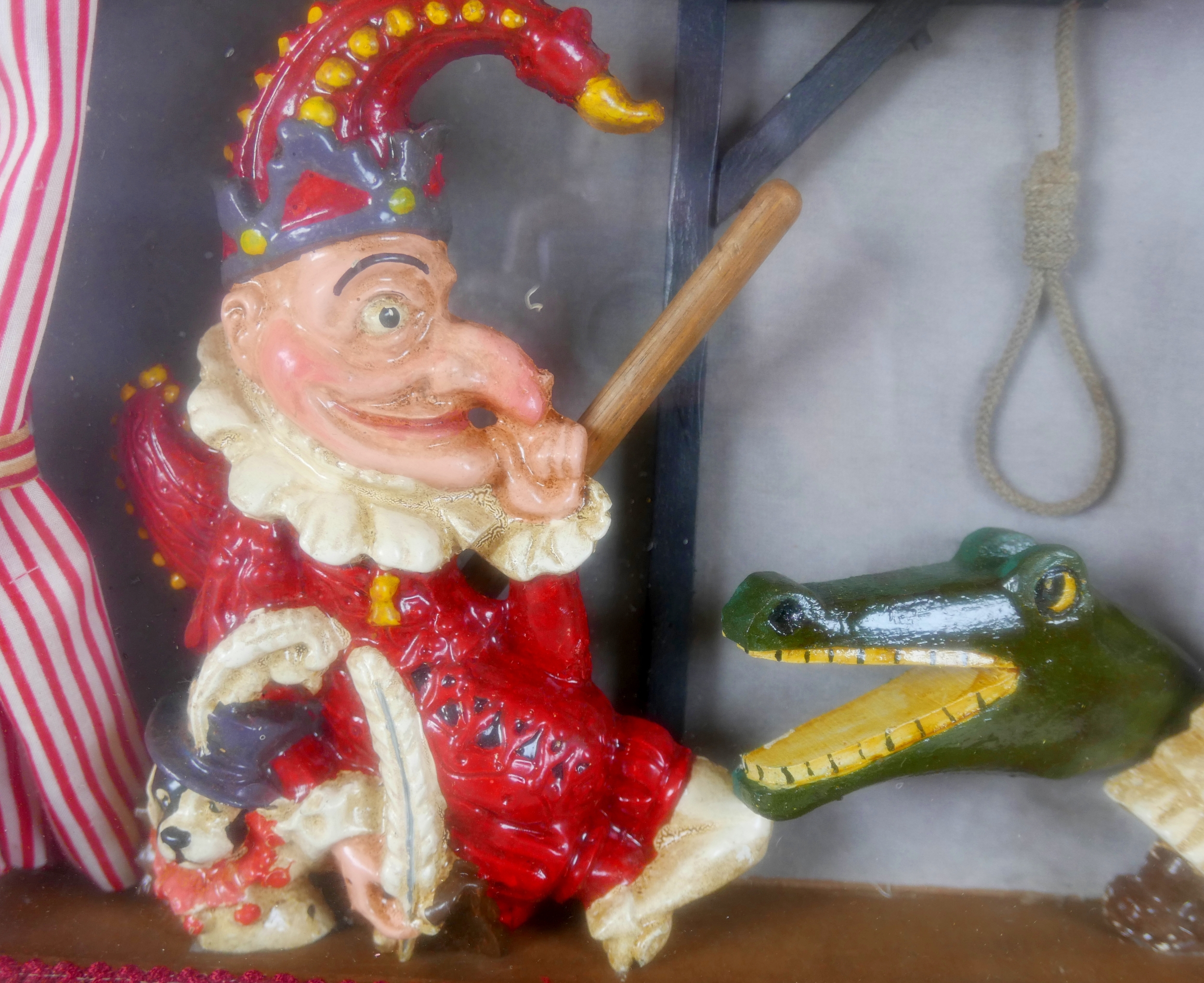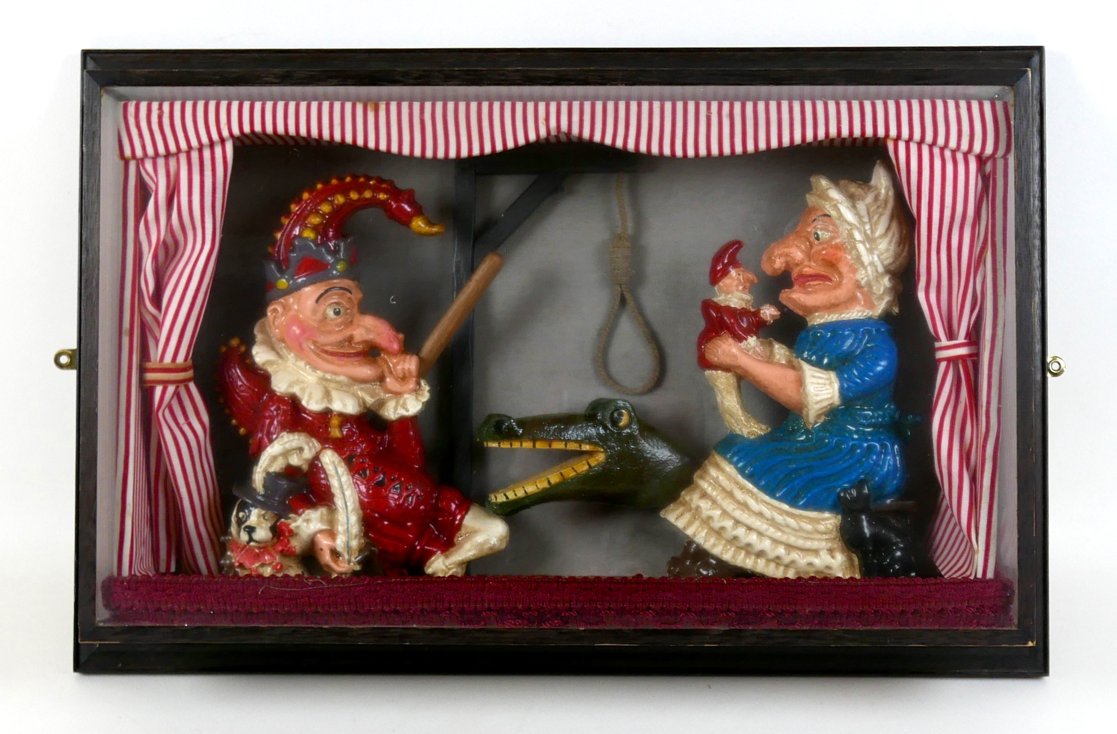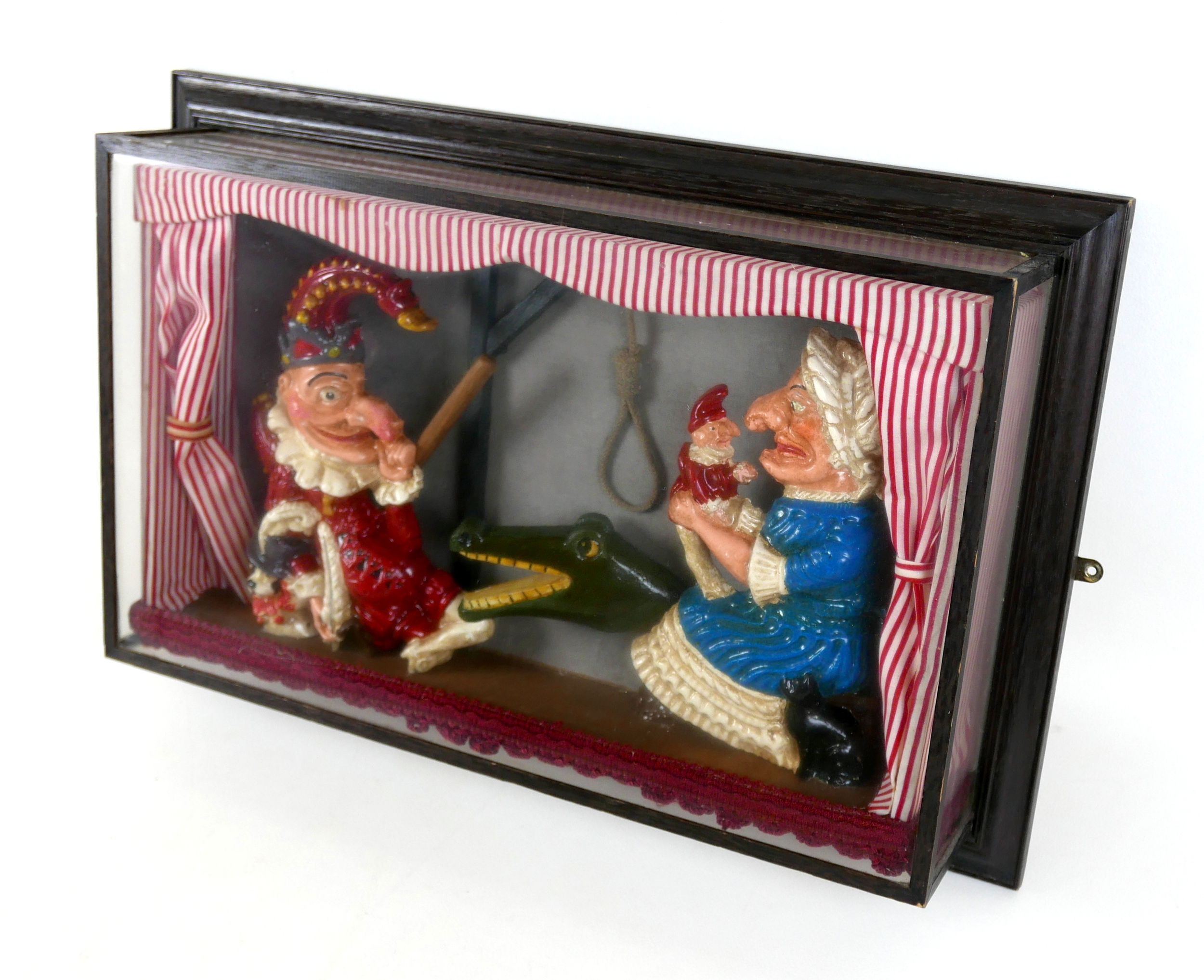 A vintage Punch and Judy diorama display case, 57 by 37 by 11cm.