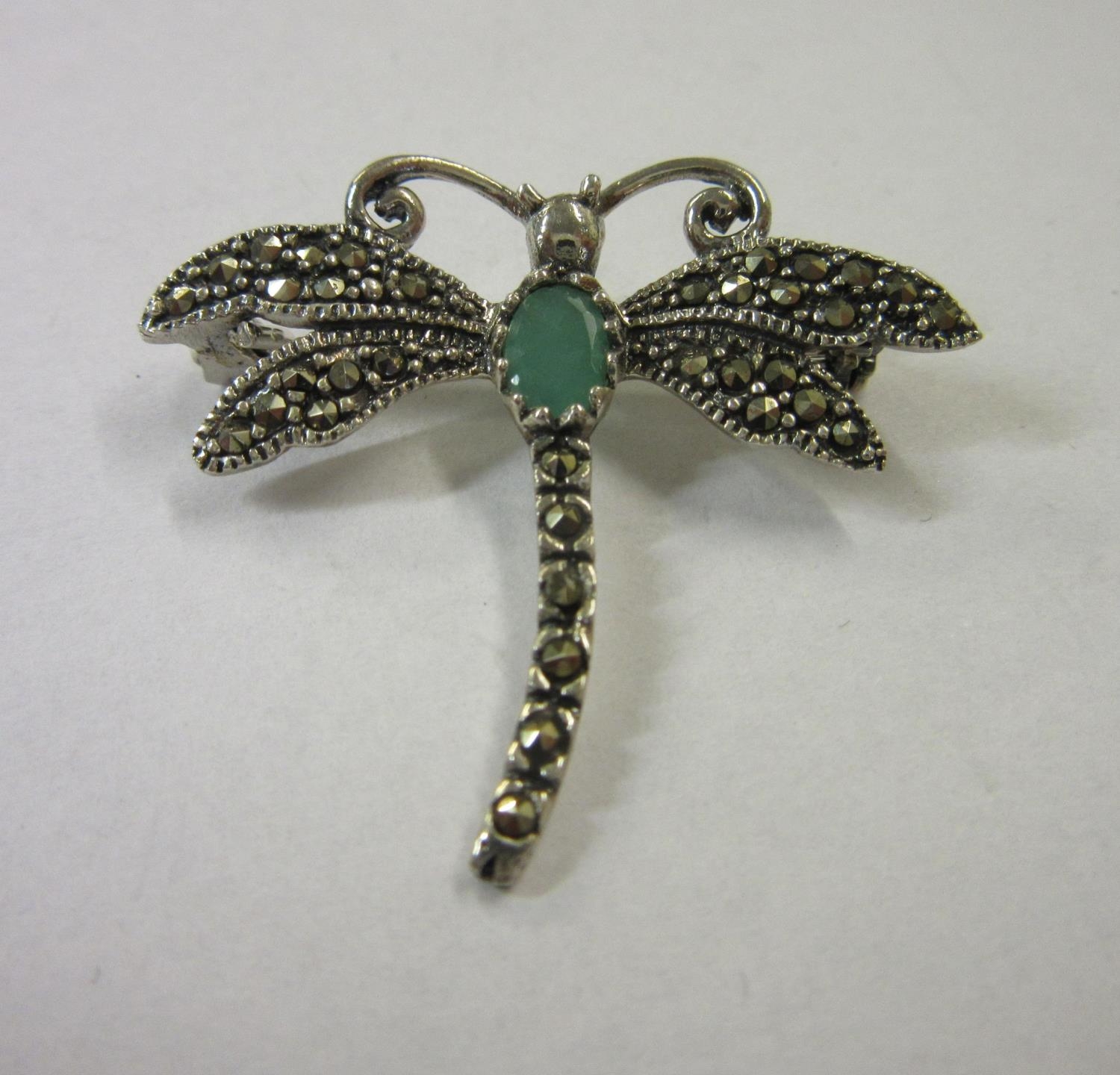 MARCASITE SET SILVER DRAGONFLY BROOCH