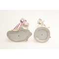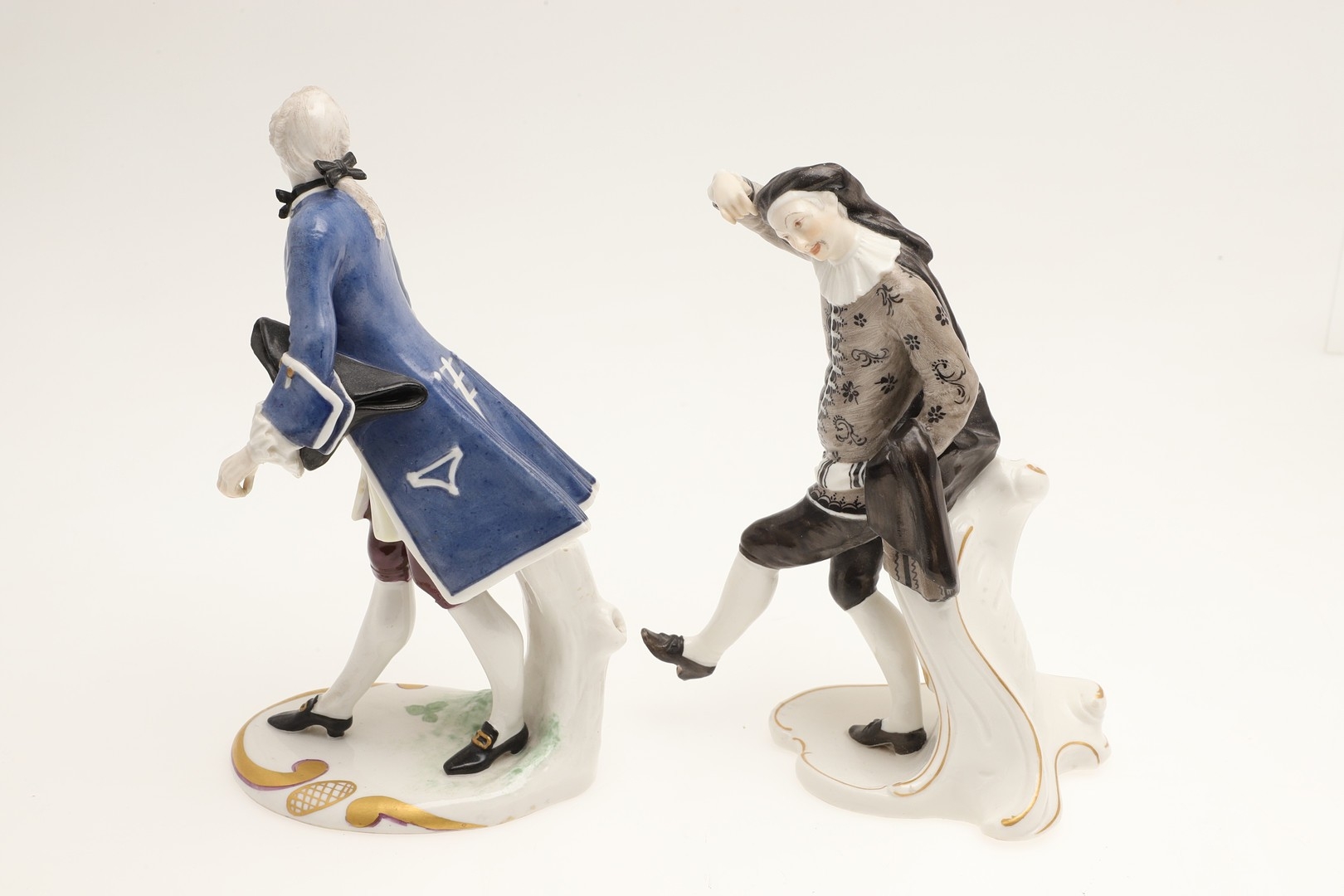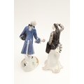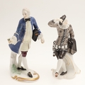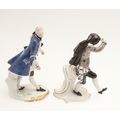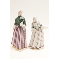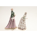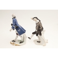 NYMPHENBURG PORCELAIN FIGURES. Including two similar figures with one holding a fan (18cms high), and four other various Nymphenburg figures including Scaramouche (16.5cms high). With painted or impressed marks. (6).