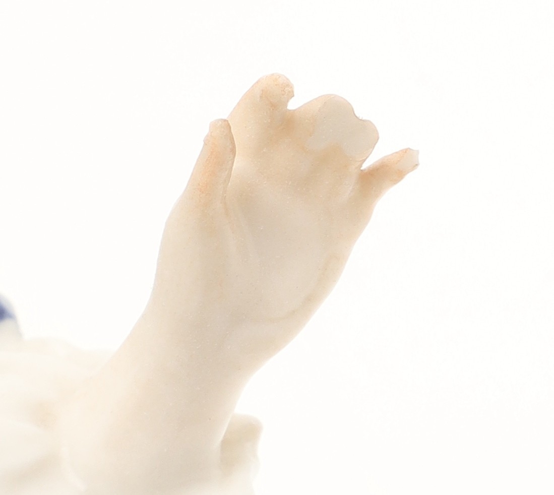 figure with floral dress, crack to the base, chips to the fingers
