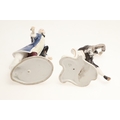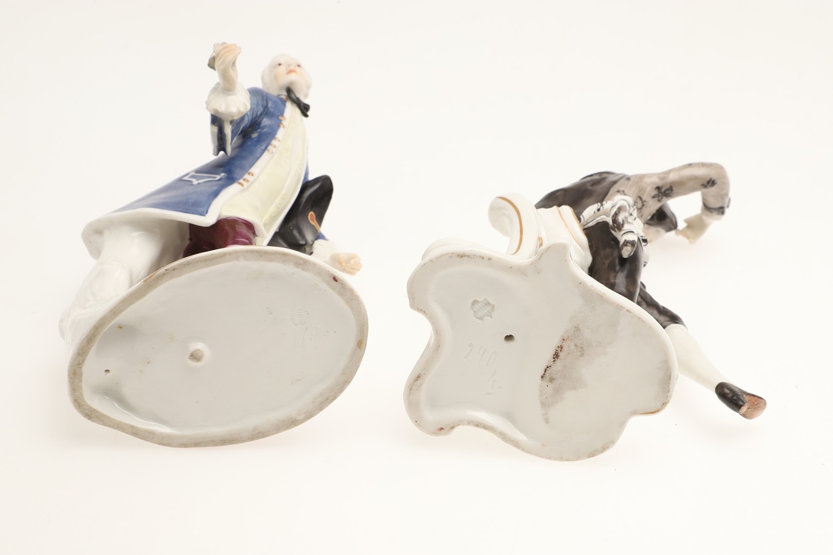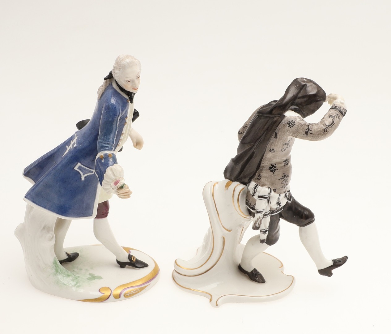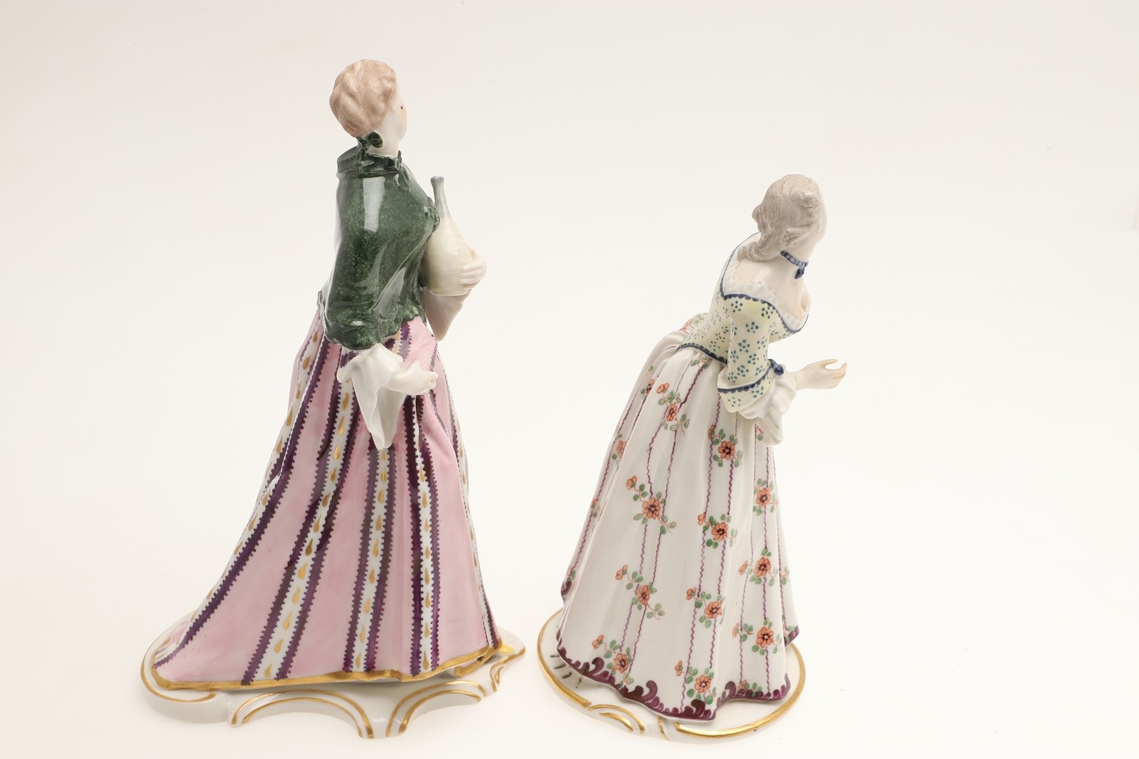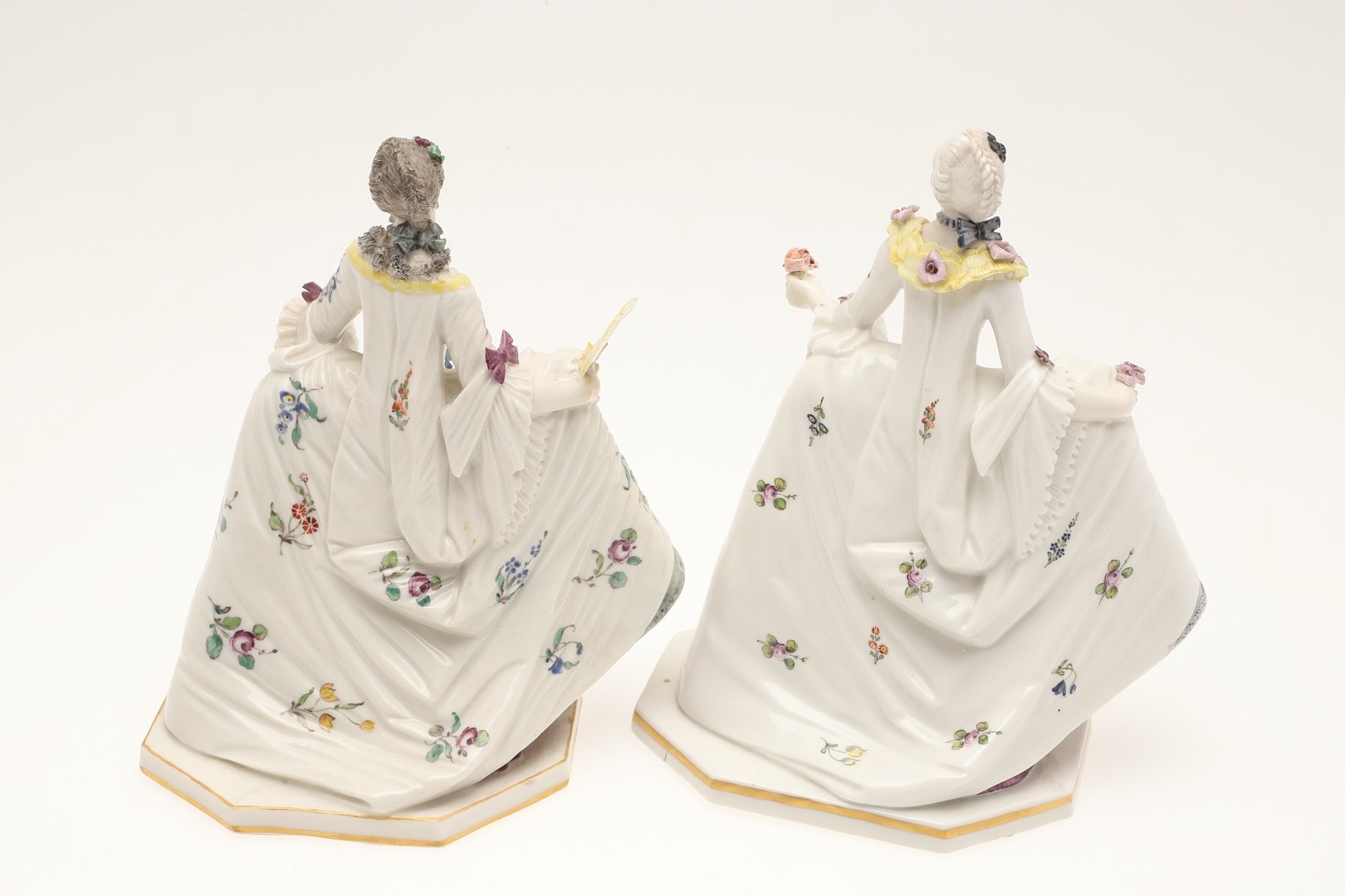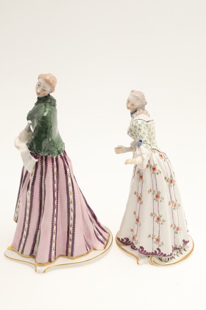 figure with fan, mirror has been broken and repaired, similar figure with nibbles to the flowers