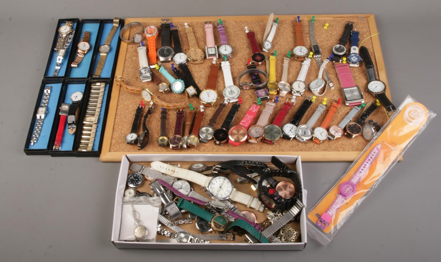 A large collection of wristwatches to include Lorus, Skagen, Fossil, DKNY, Regatta, Rotary, Philip Mercier, Citron, Sekonda, Ravel, Lacoste etc.