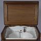 Early 20th Century oak free-standing sink unit with separate galvanised water reservoir by Maple & Co, missing mirror from lid (back H115cm, H95 x W81 x D76cm)