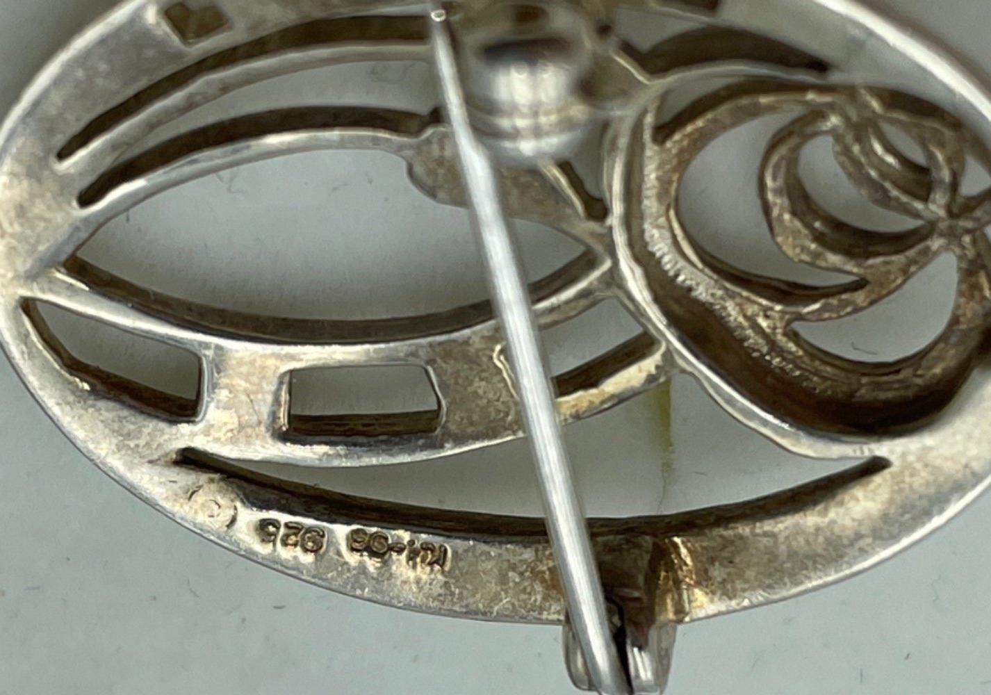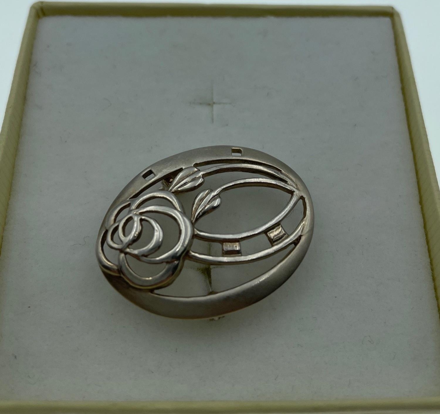 A 925 stamped Oval MACKINTOSH ROSE BROOCH (3CM long), gross weight 4.73g