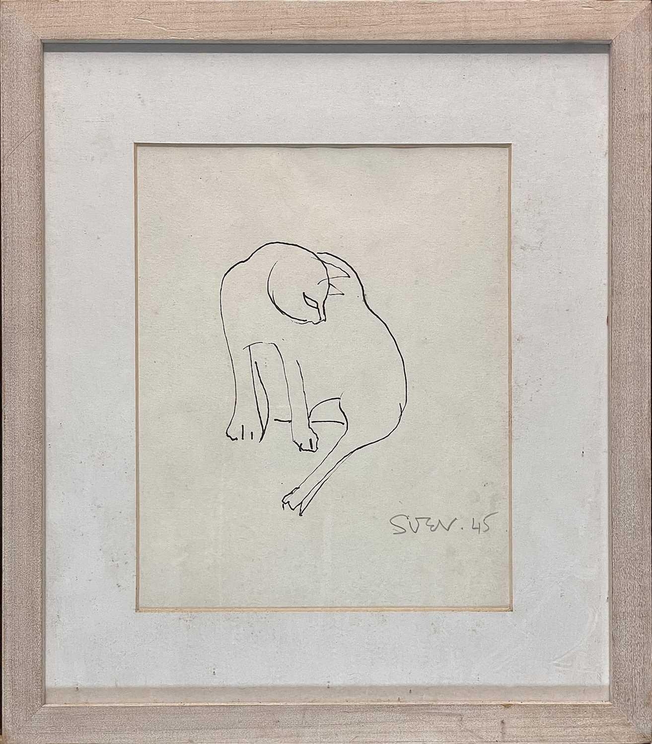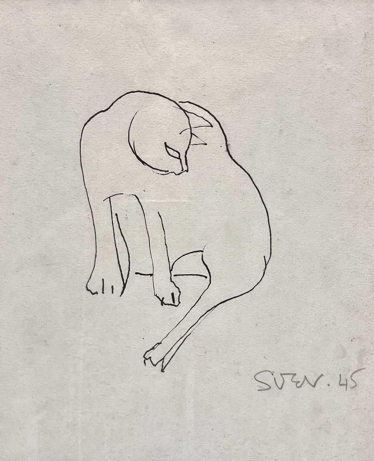 Sven BERLIN (1911-1999) Cat Ink on paper, signed and dated '45, 22 x 17.5cm. Frame size 35 x 30.5cm.