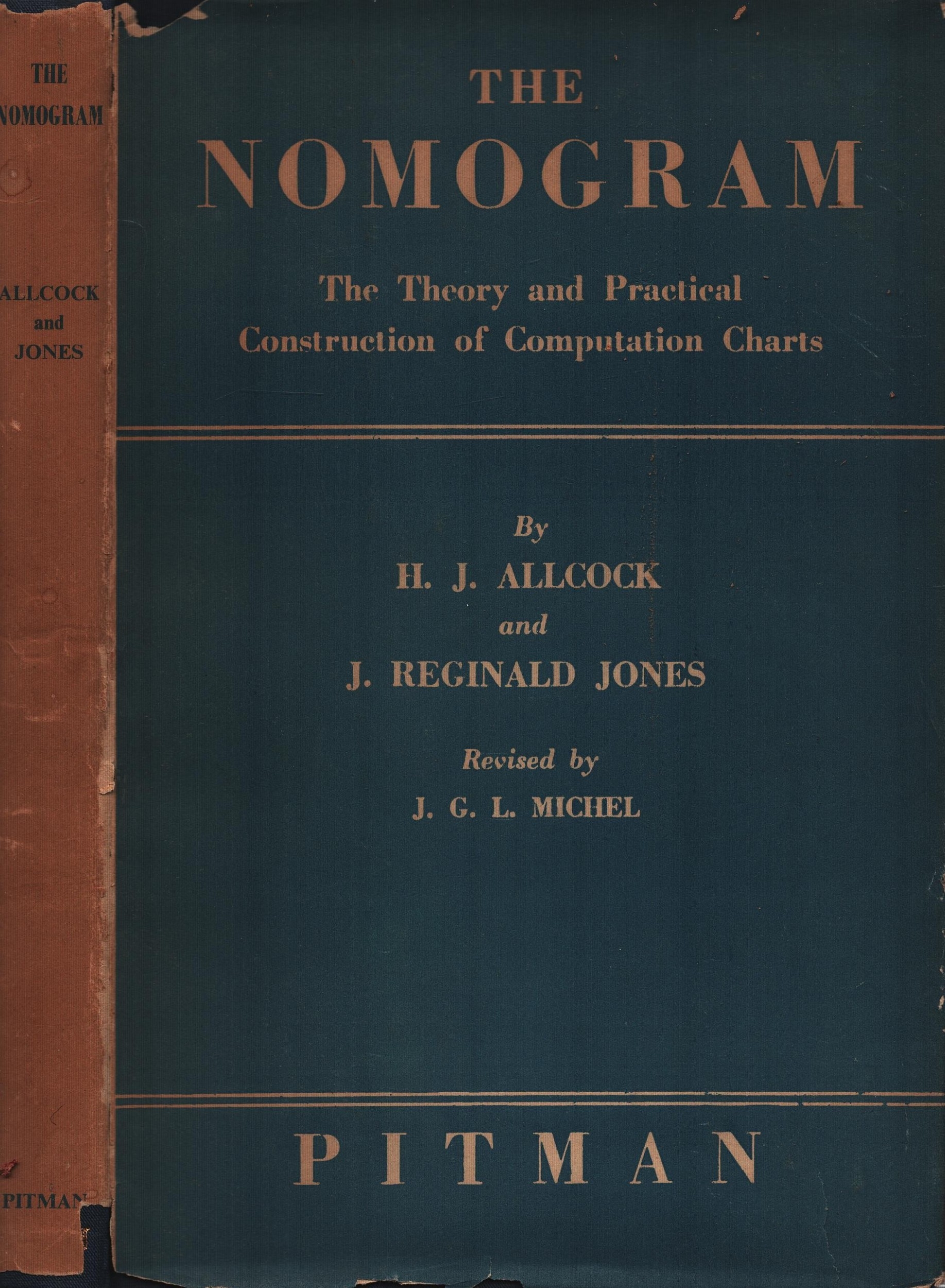 The Nomogram the Theory & Practical Construction of Computation Charts hardback book. By H.J. Allcock & J. Reginald Jones. Revised By J.G.L. Michel. Fourth Edition. Publisher London Sir Isaac Pitman & Sons, Ltd. Cover torn.
