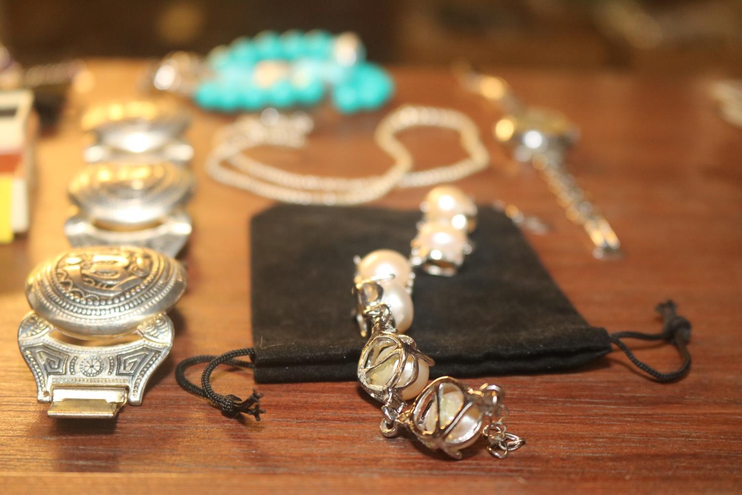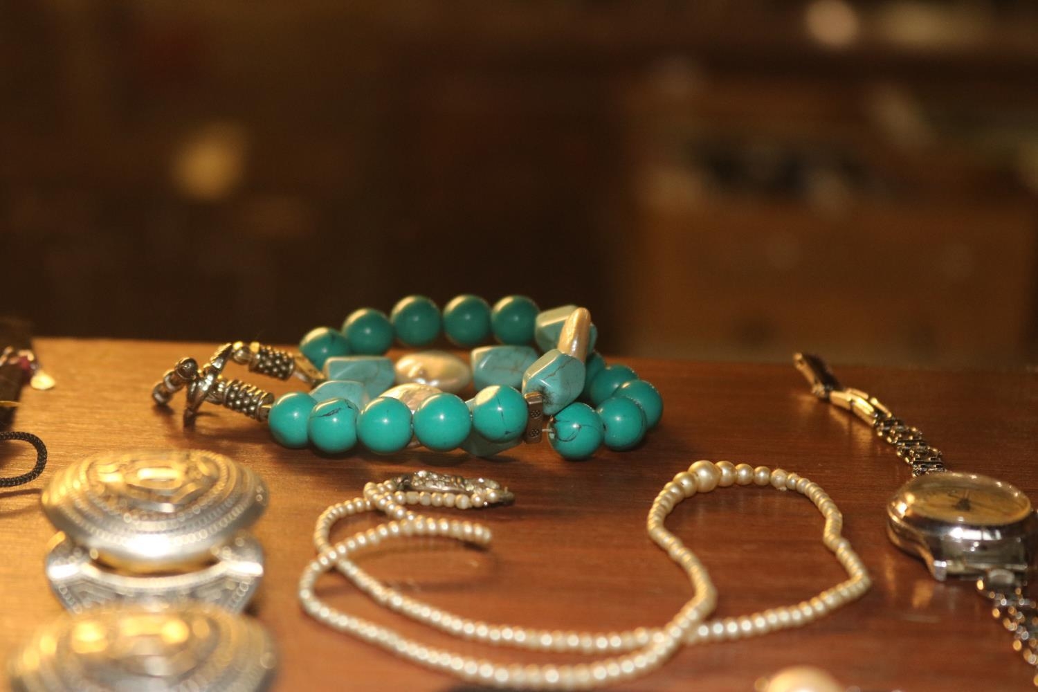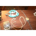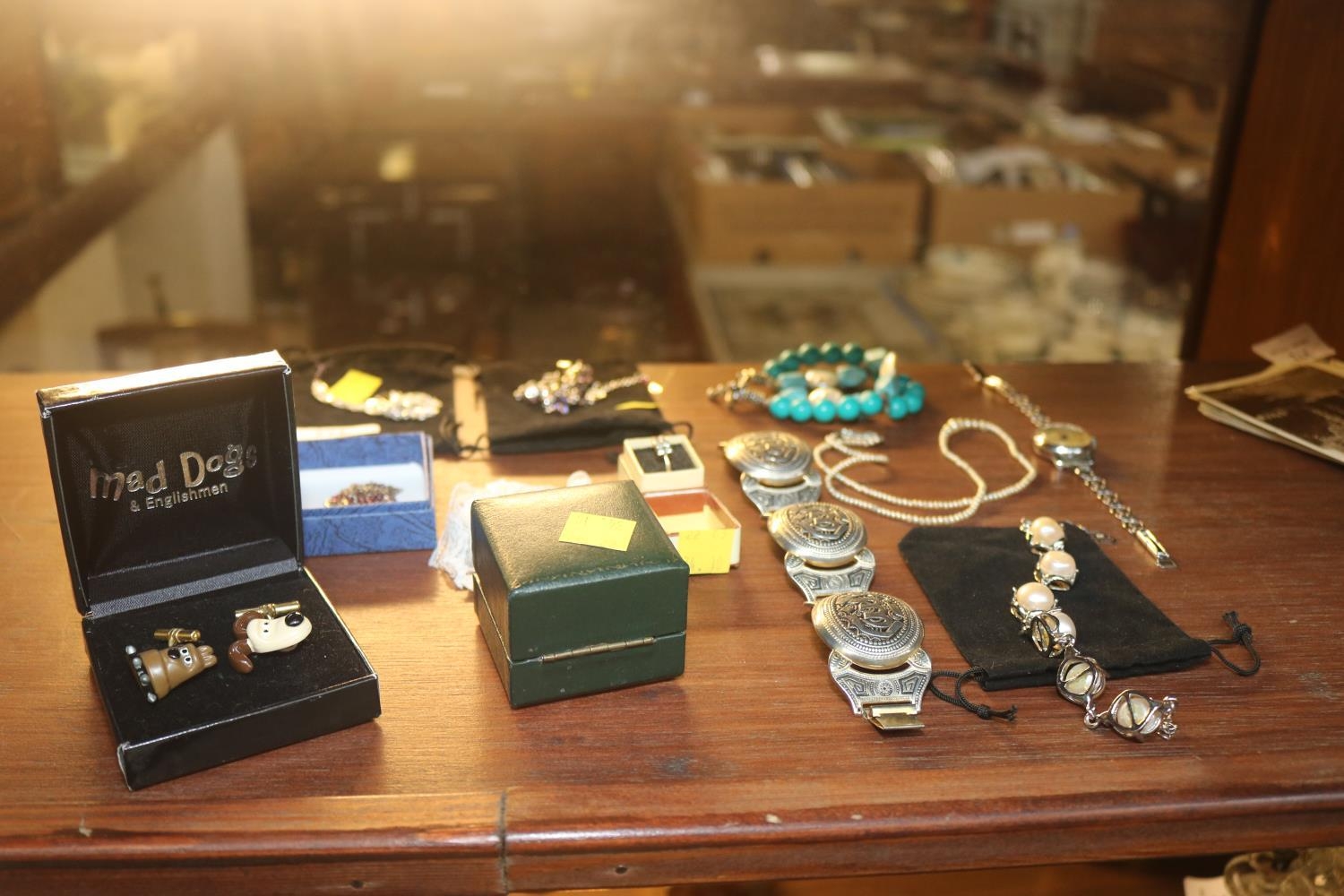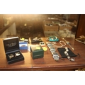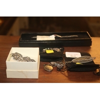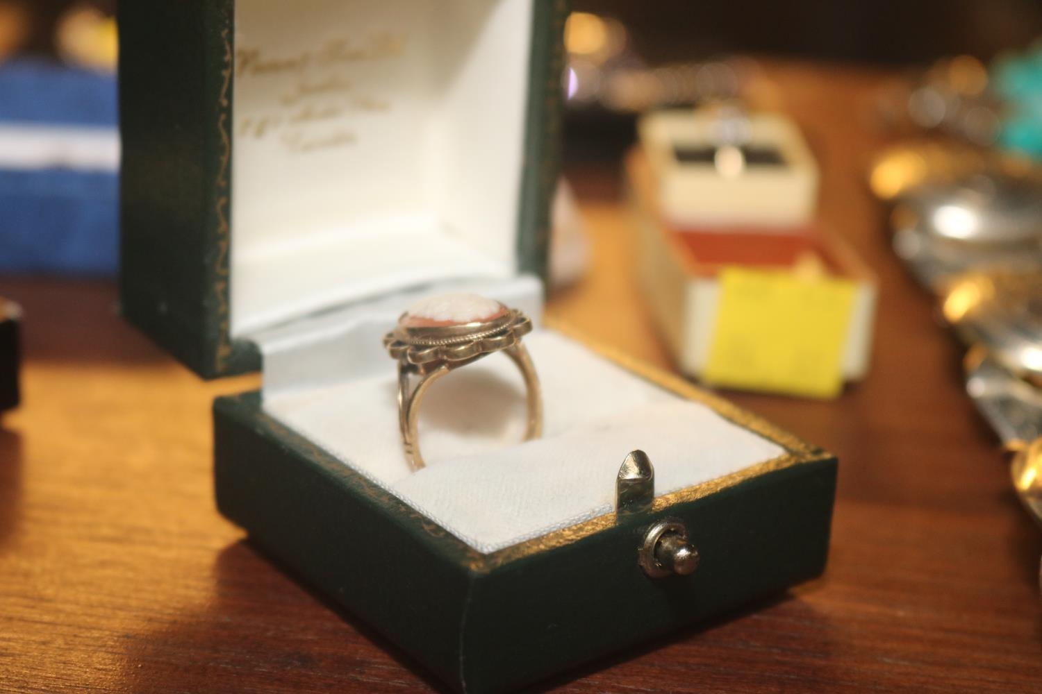 9 CT WARTIME RING IN BOX, GOLD CAMEO RING & ASSORTED SILVER NECKLACE & BRACELET