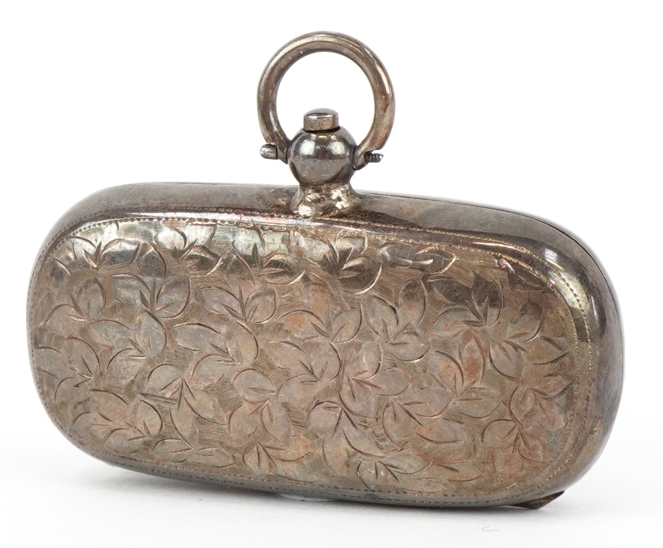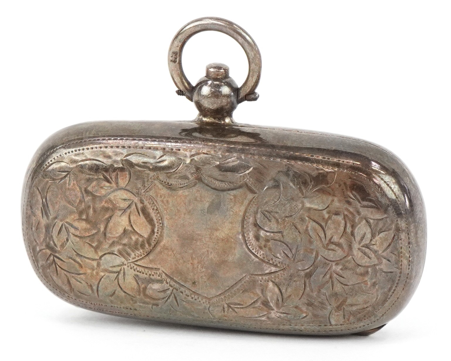 E J Trevitt & Sons, an Edwardian silver double sovereign fob case with an unengraved cartouche and leaf design, Chester 1911, 5.7cm wide, 30.0g.