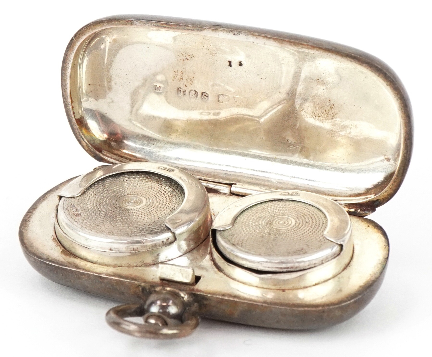 Good general condition. No visible dents or splits. The clasp is secure. The springs are working and hinge is okay