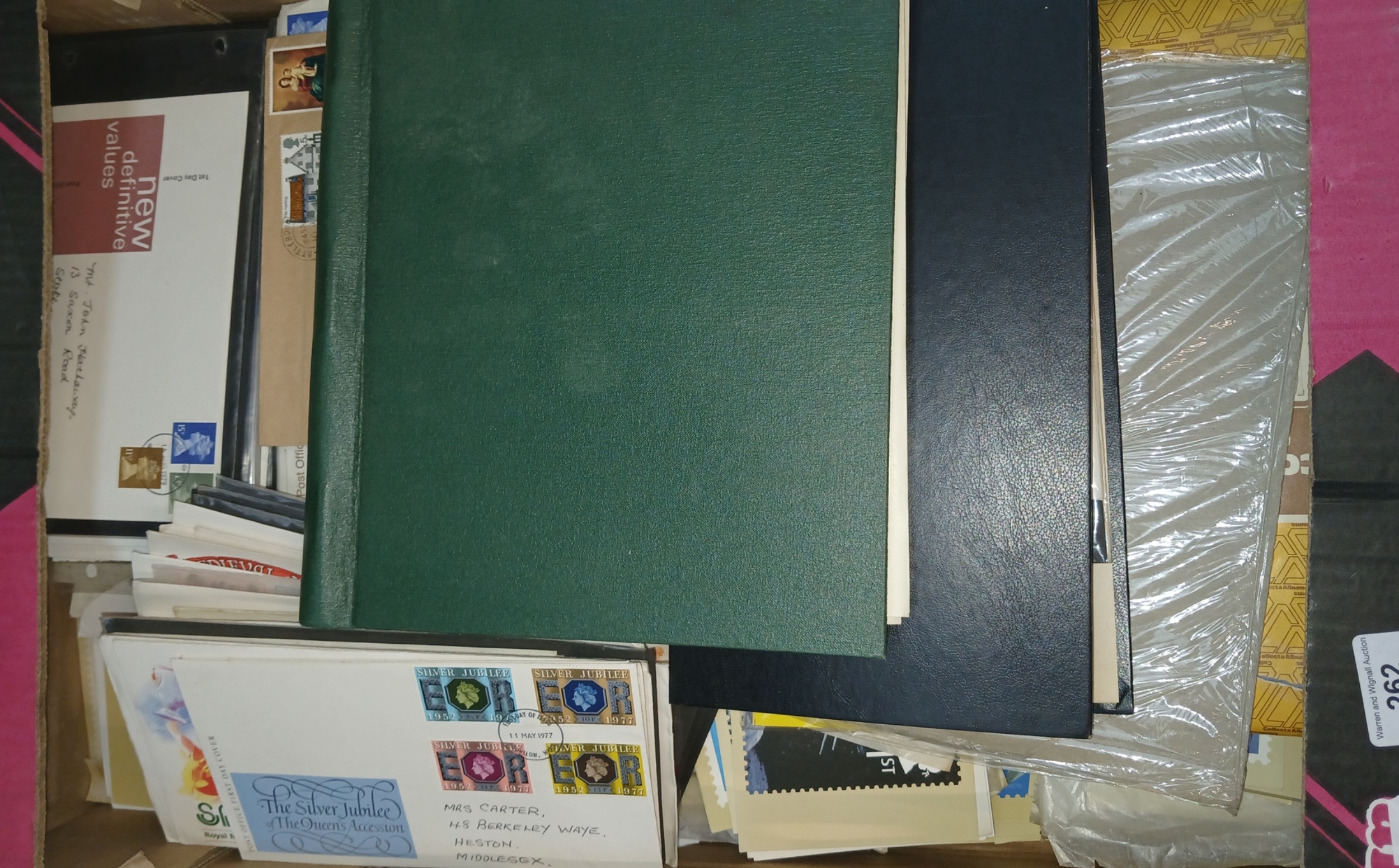 A box of stamps and first day covers