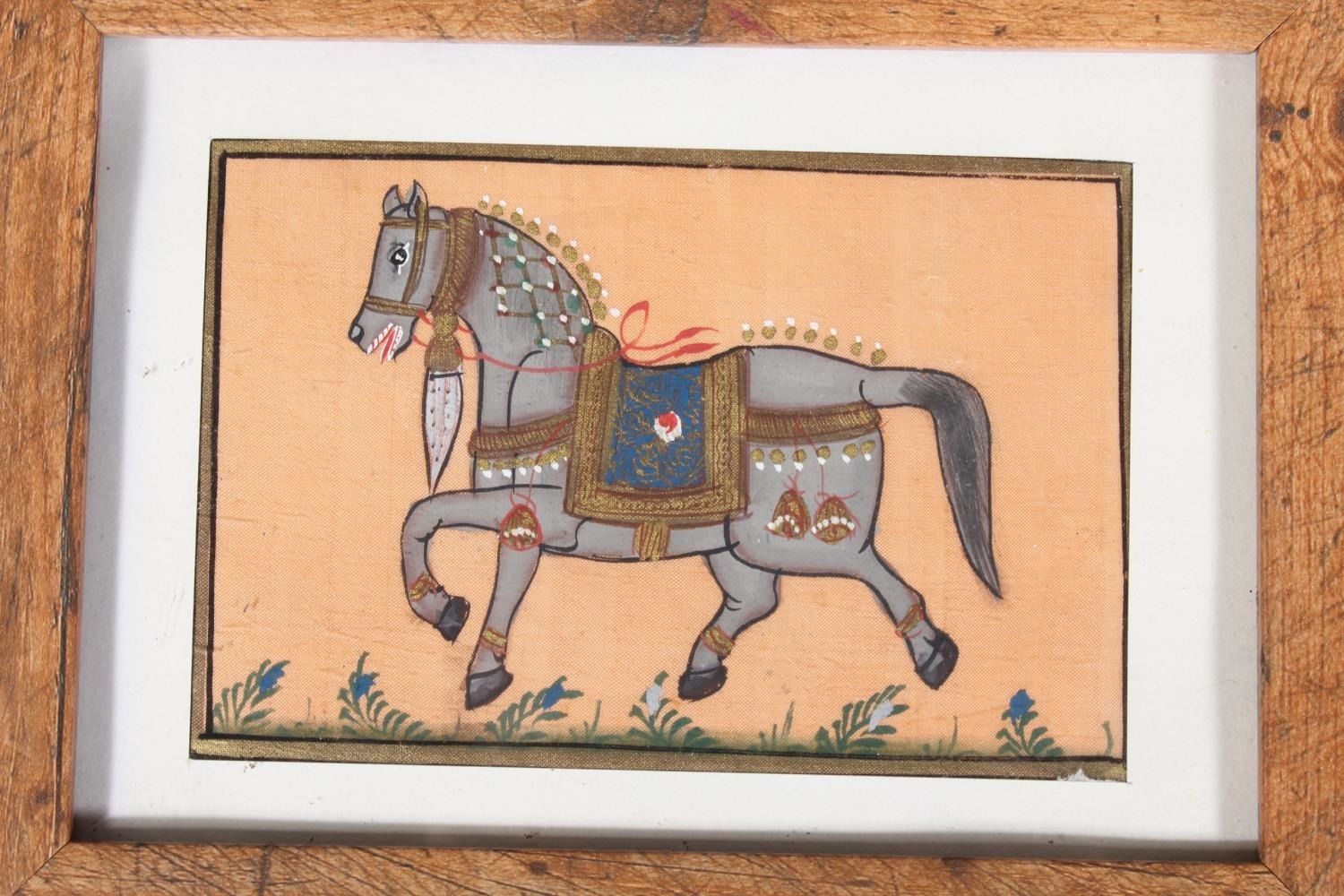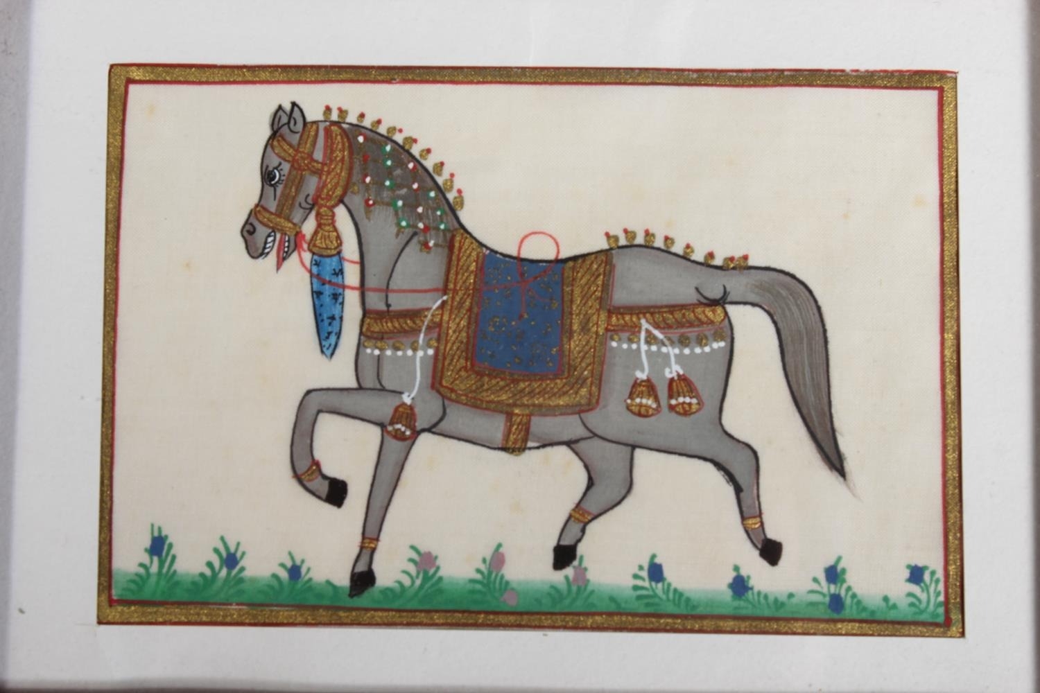 Three Mughal Indian style silk pictures of royal horses, in ...