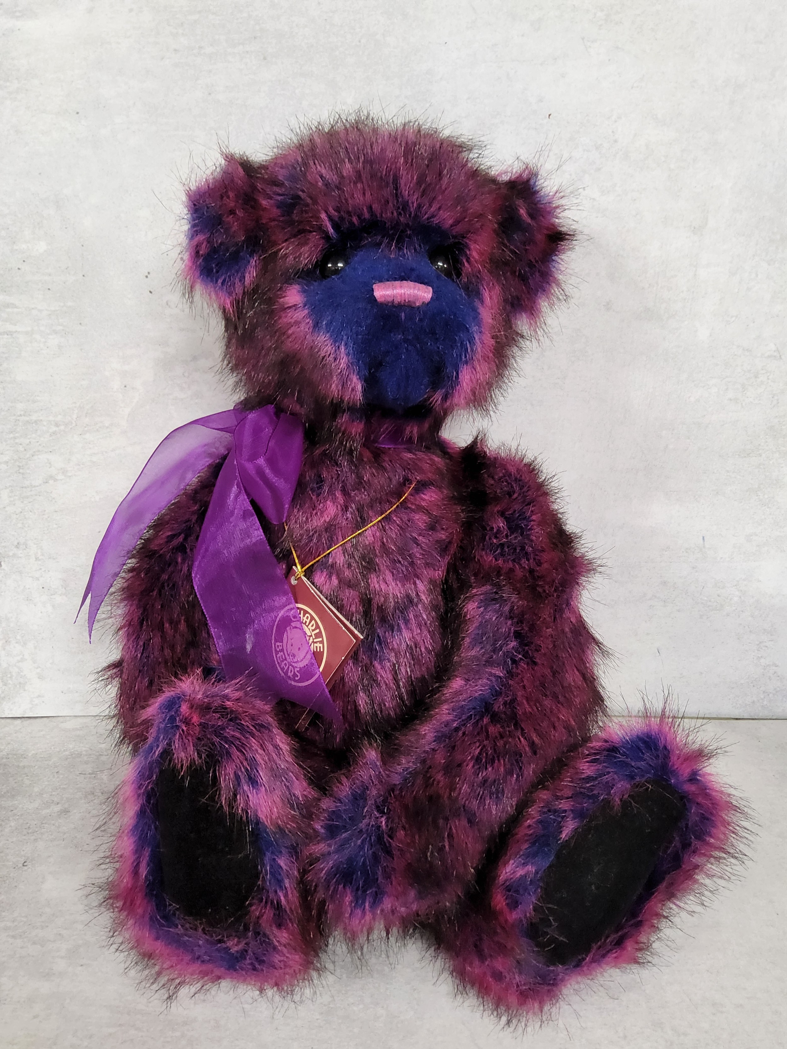 Charlie Bears Plush Collections - Firework CB620001 exclusively designed by Heather Lyell with jointed arms and legs, stitched nose, purple bow, original tags; (height in bear paws 14) 2012