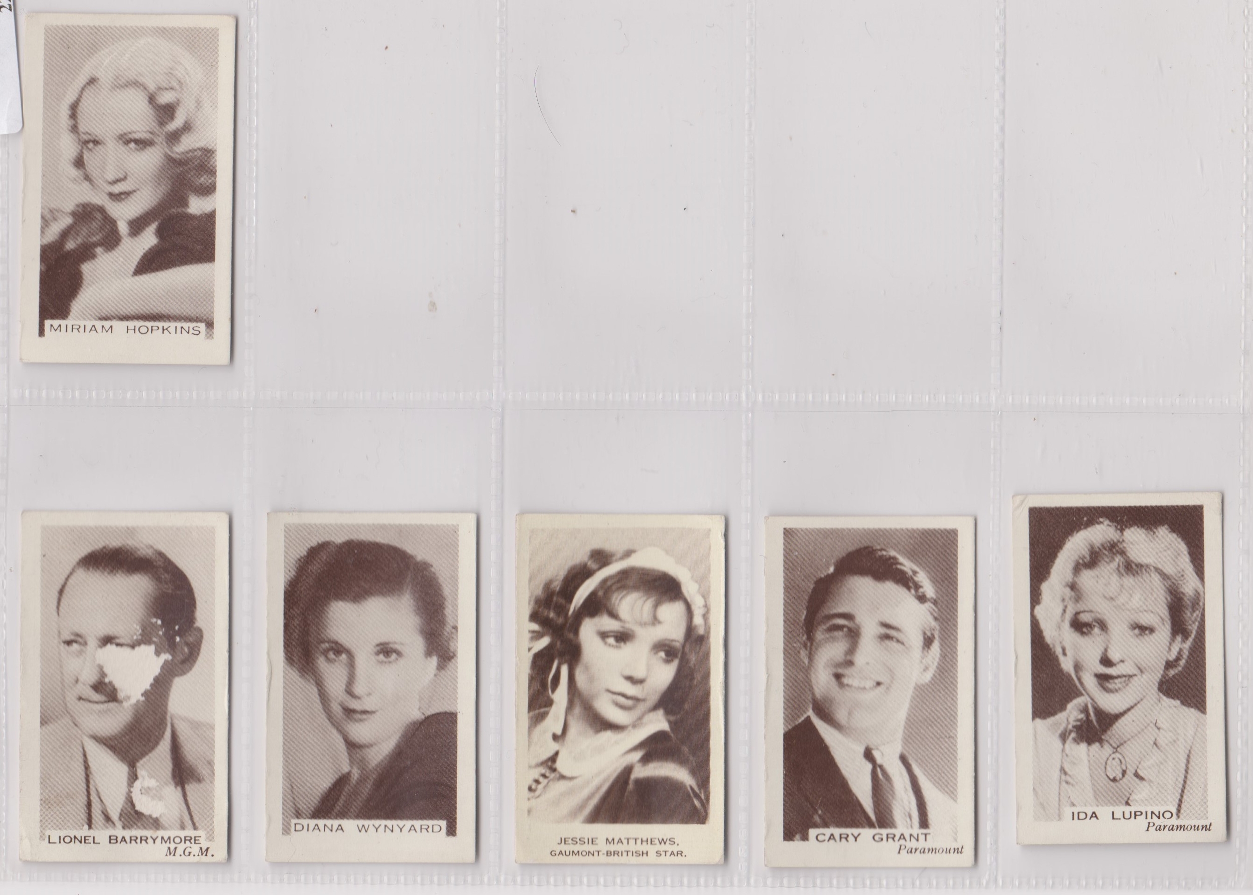 United Services Co Ltd Popular Screen Stars 6 cards of 50, 1937 5 excellent condition and 1 poor