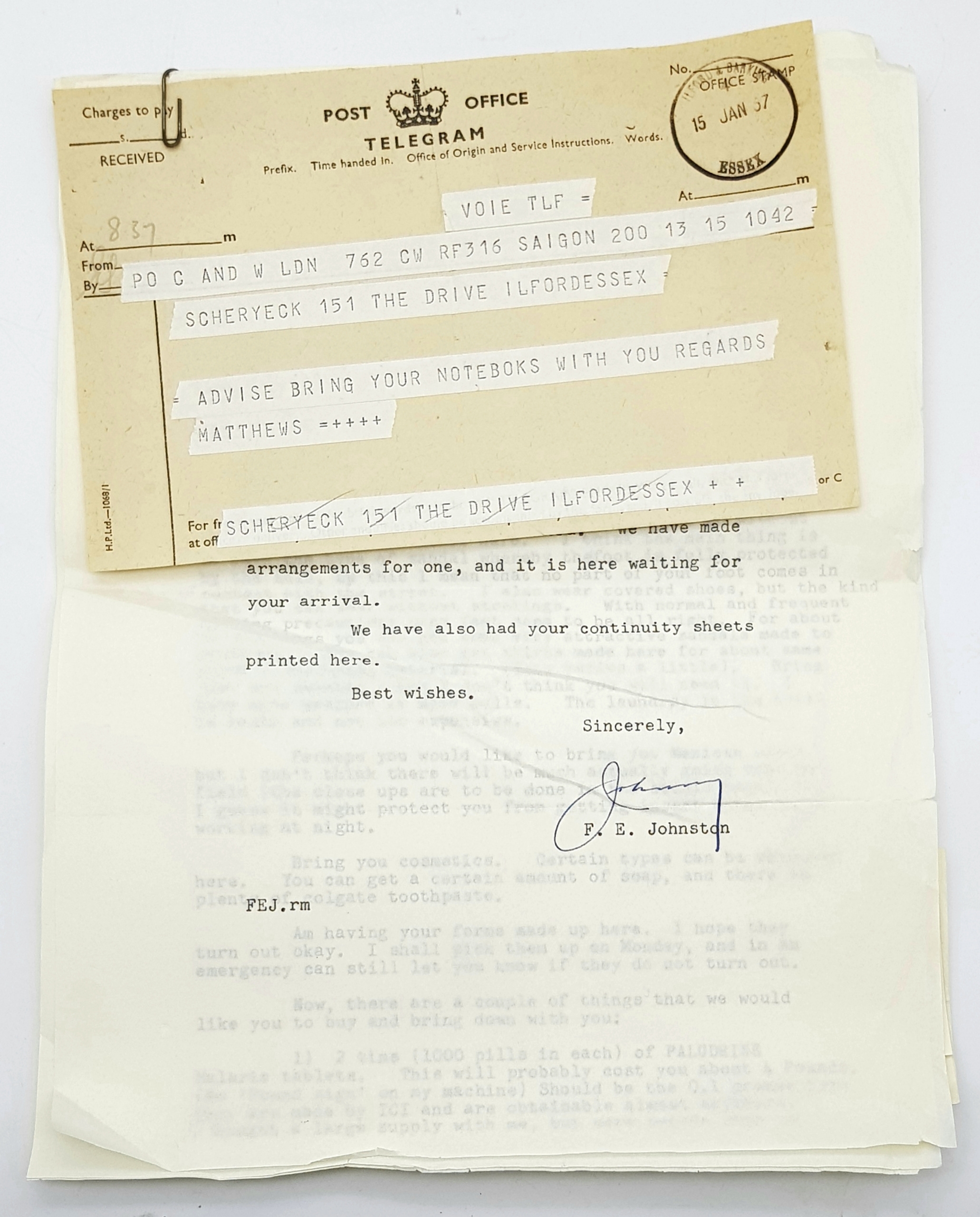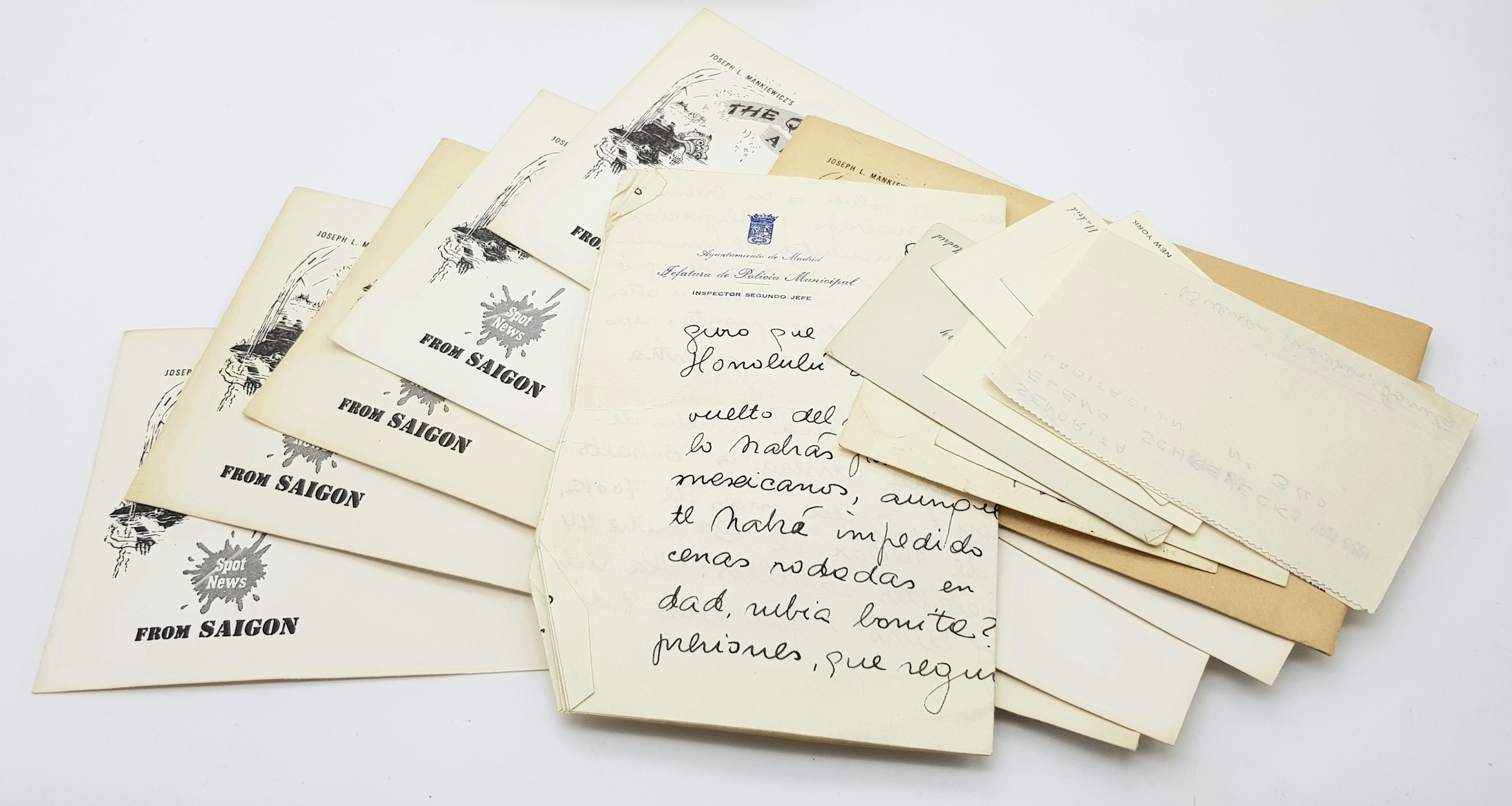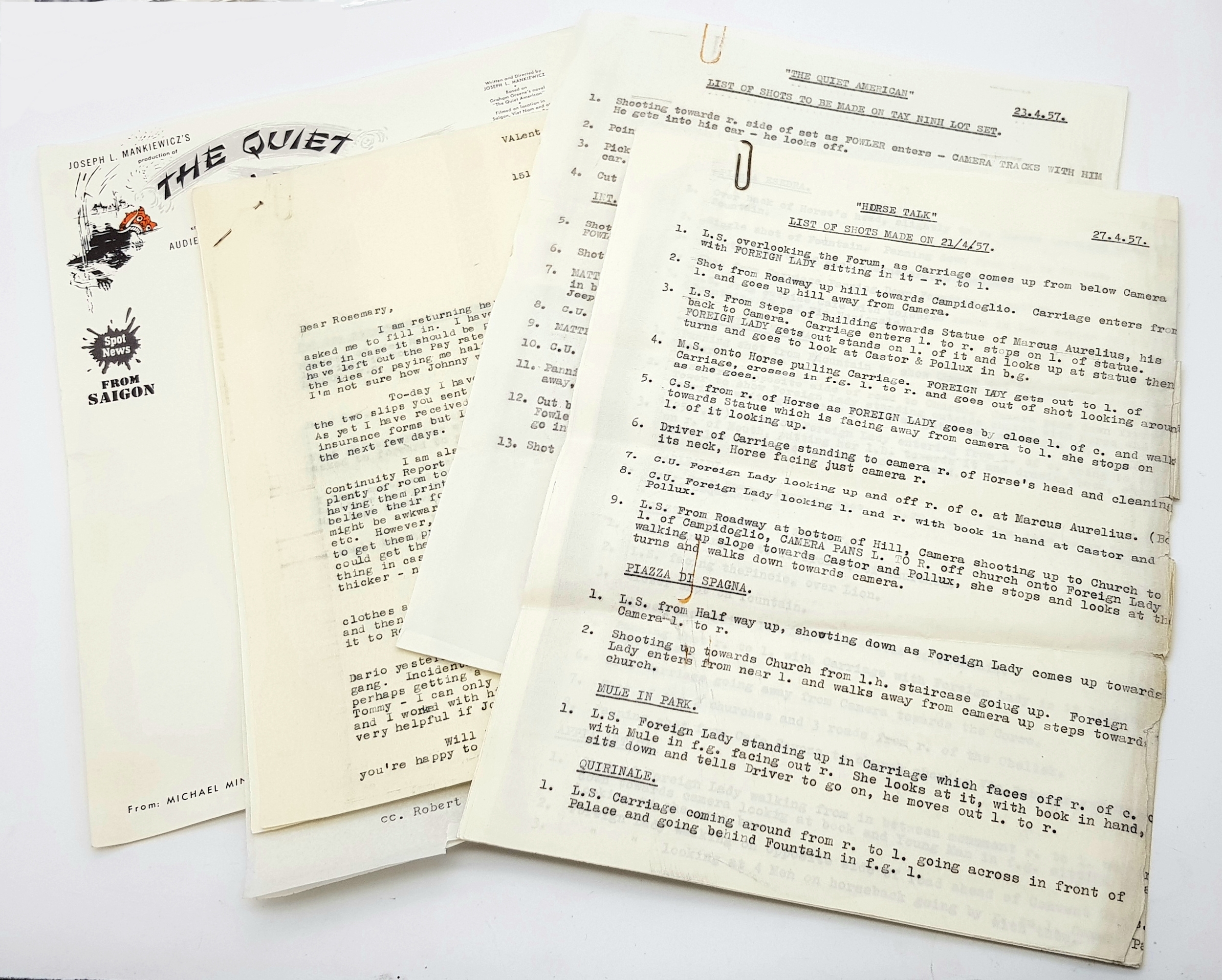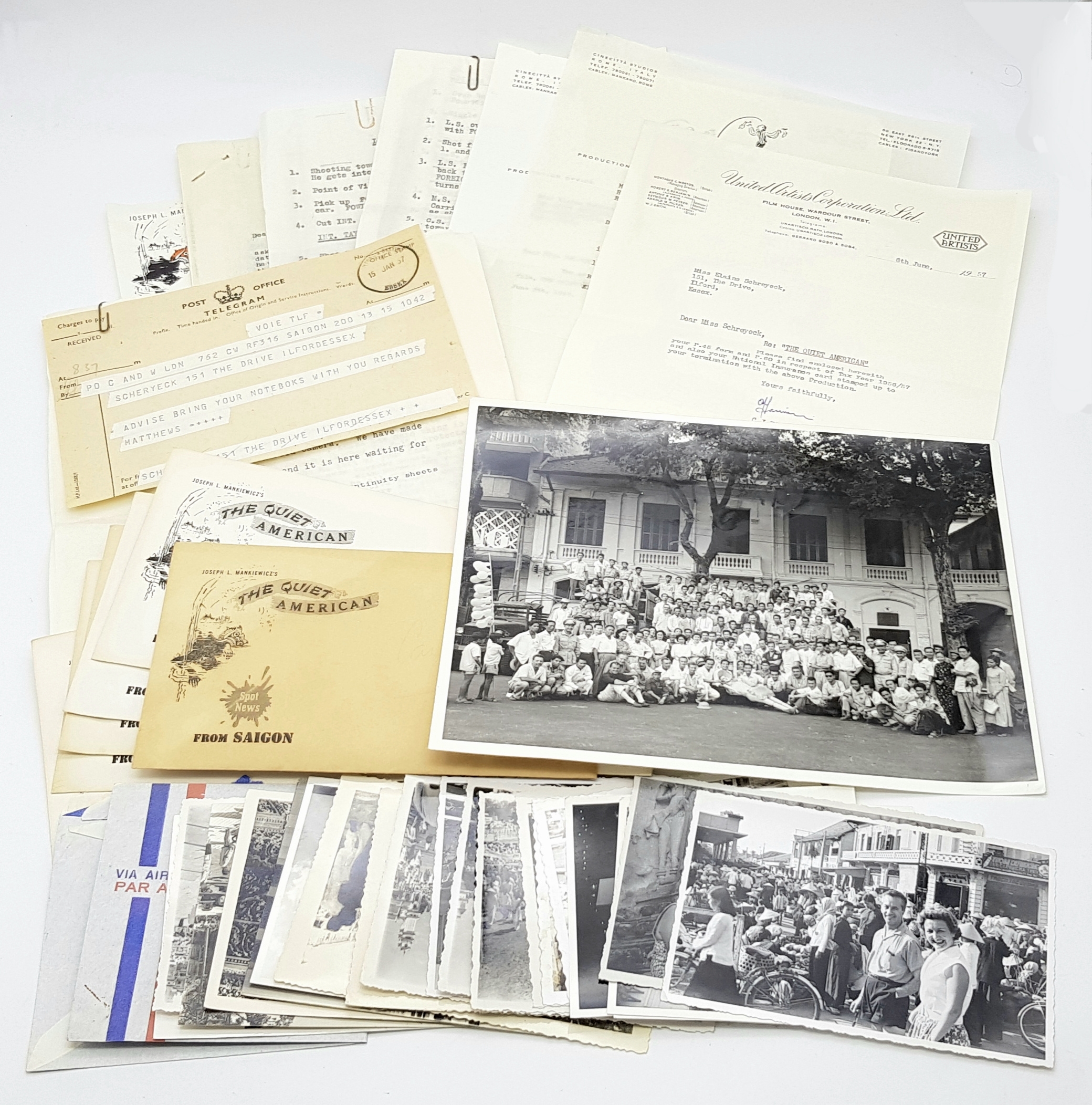 'The Quiet American' Movie Ephemara with Black and White Picture Collection From the 1958 Film. Directed by Joseph L. Mankiewicz and starring Audie Murphy and Michael Redgrave. Includes unused stationary with the films name and set pictures. A perfect addition to lot 102!