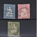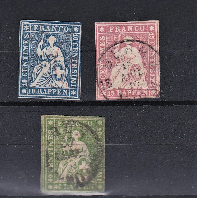 Switzerland 1858-62 'Green silk thread' SG 48-49, 51 fine used, Michel 14-15, 17. Cat £172