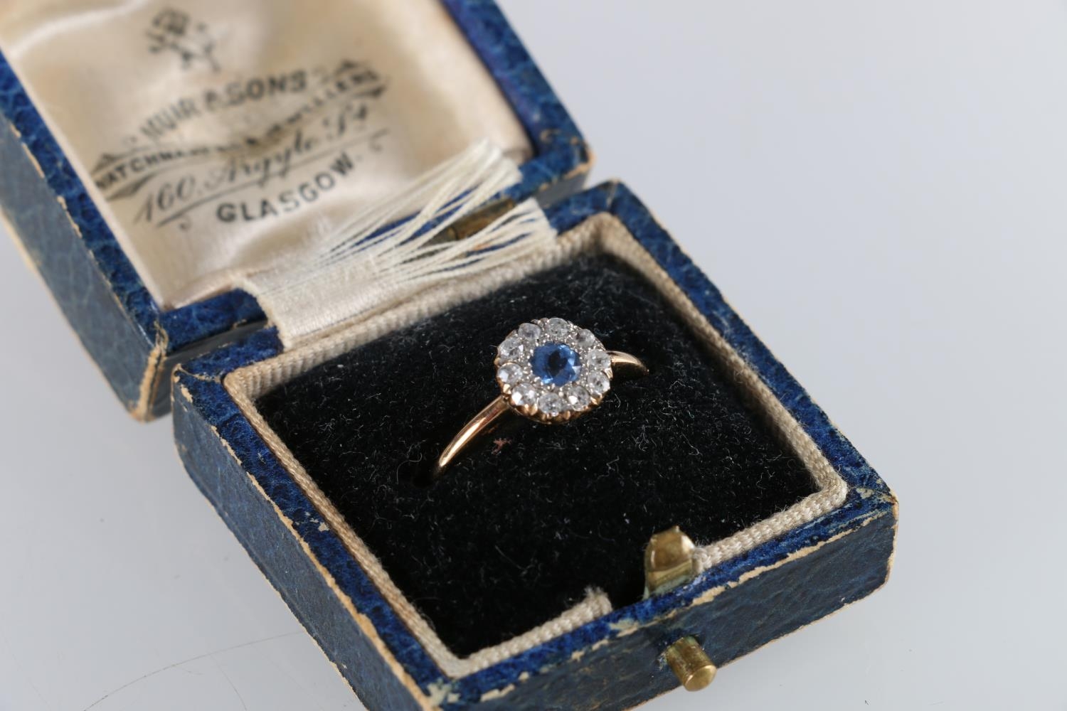 Antique unhallmarked gold sapphire and diamond ring, the stones arranged in a flowerhead design, ring size M, 1.9g