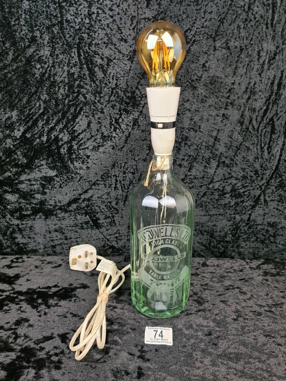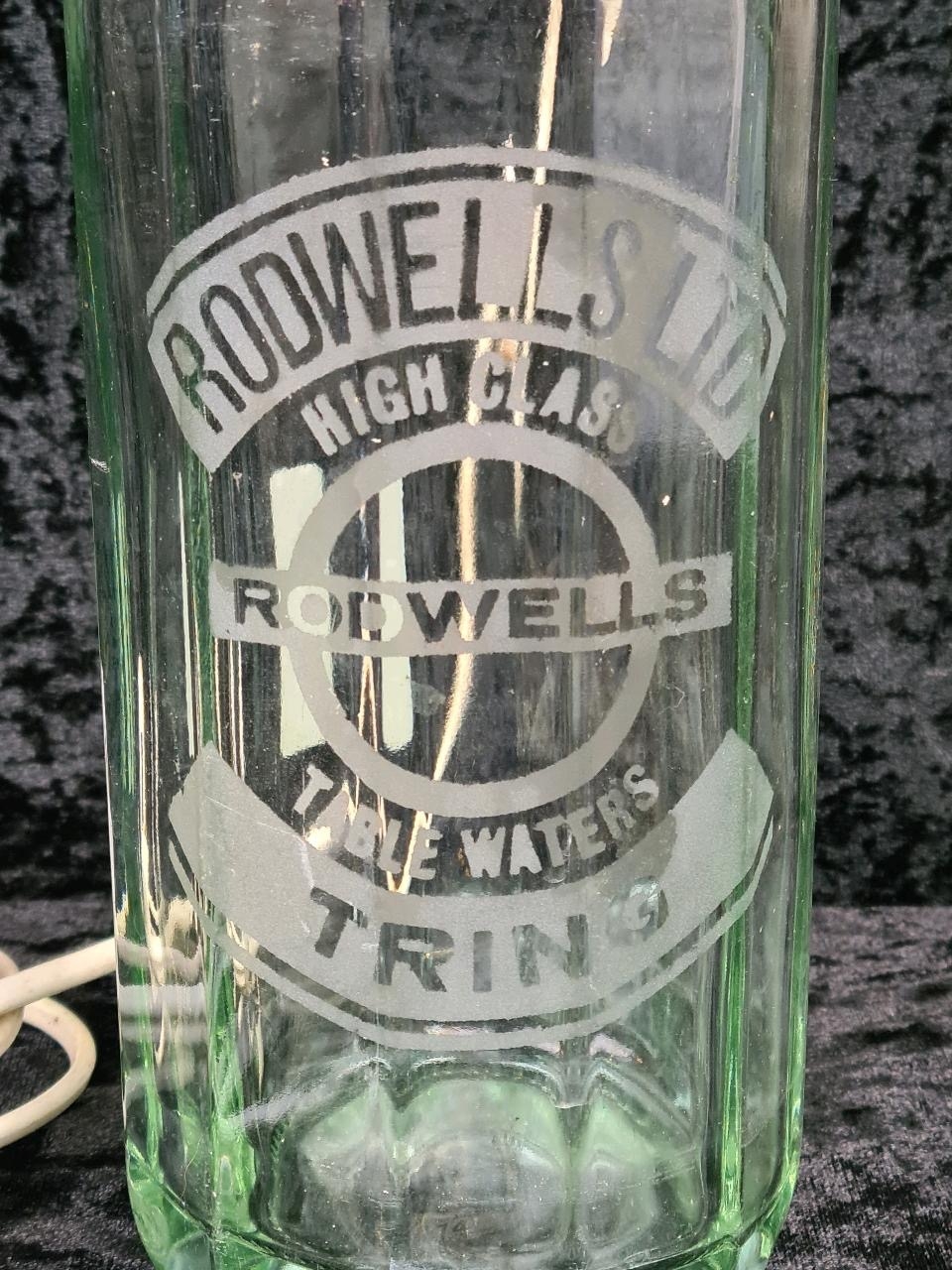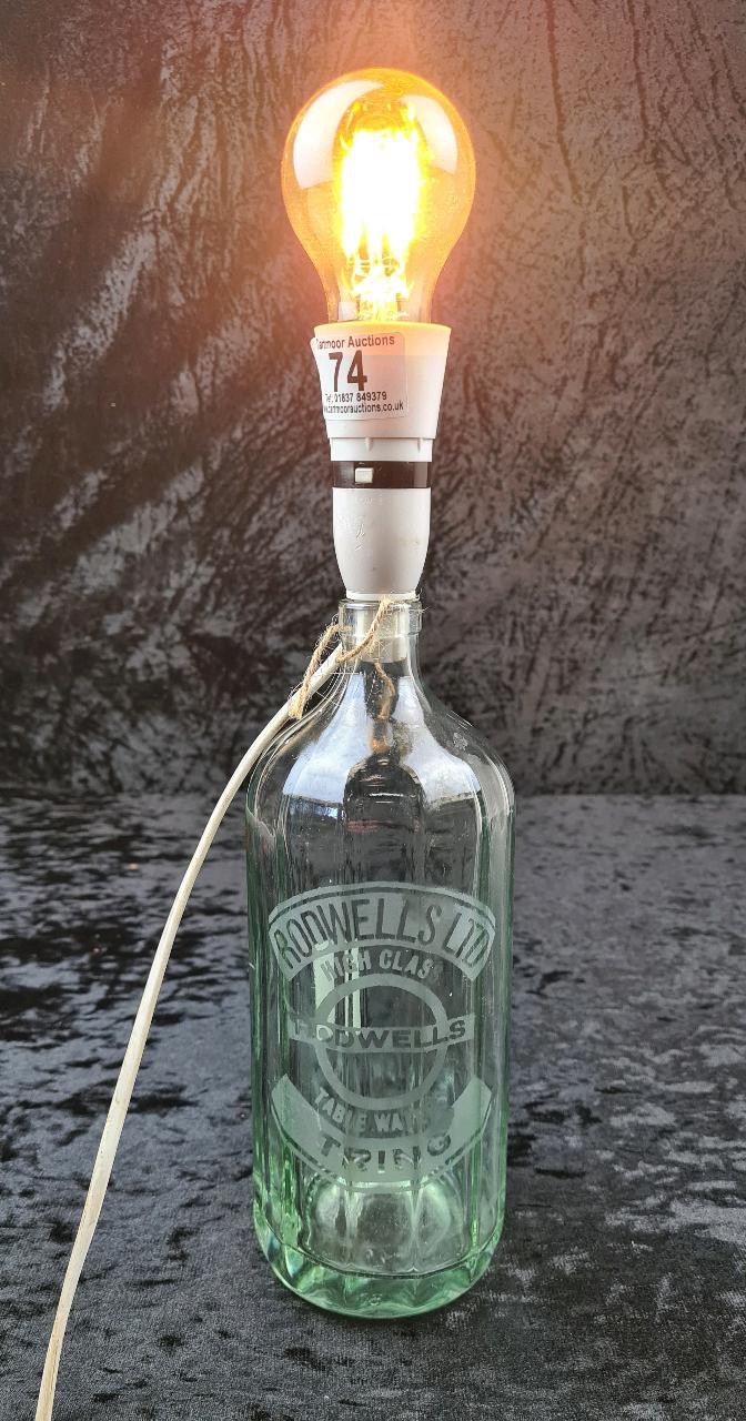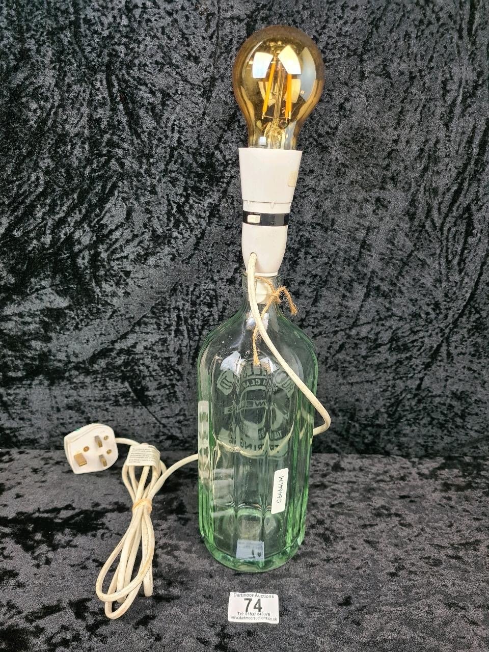 Vintage soda siphon glass bottle converted to an electric lamp. Approx H40cm.