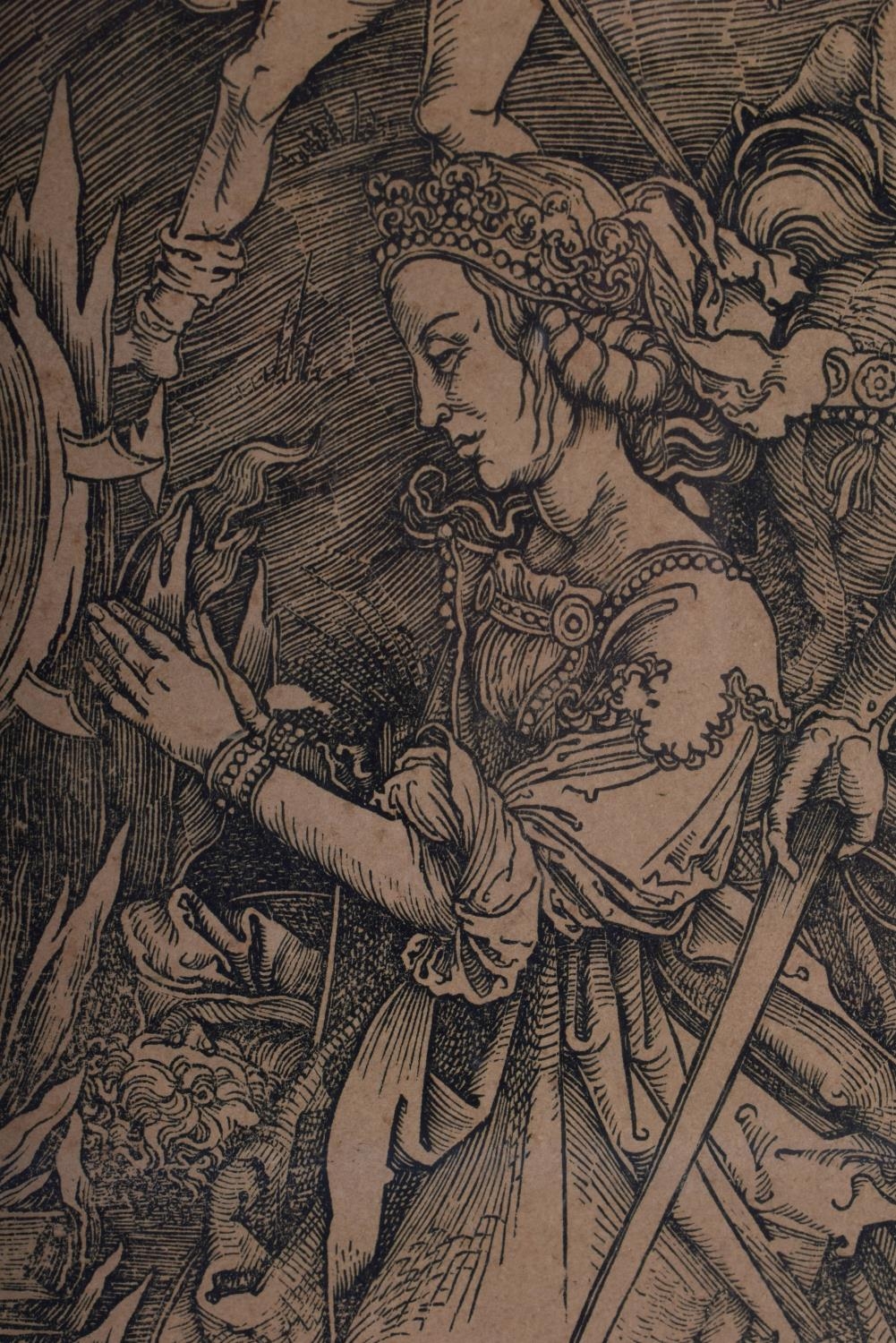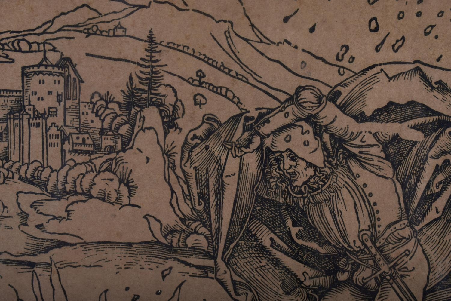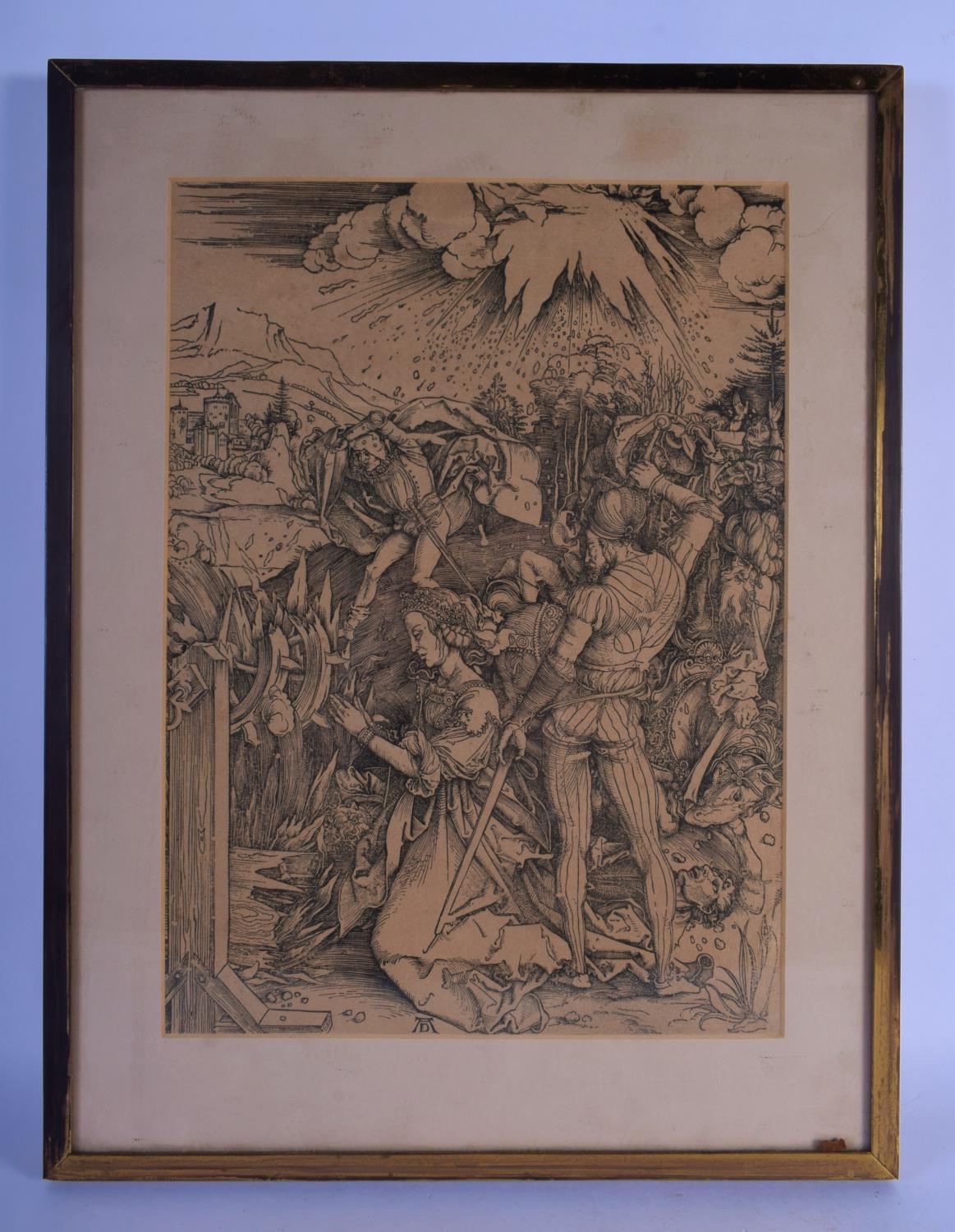 After Albrecht Durer (1471-1528) Engraving, Figures within a landscape. 48 cm x 36 cm.