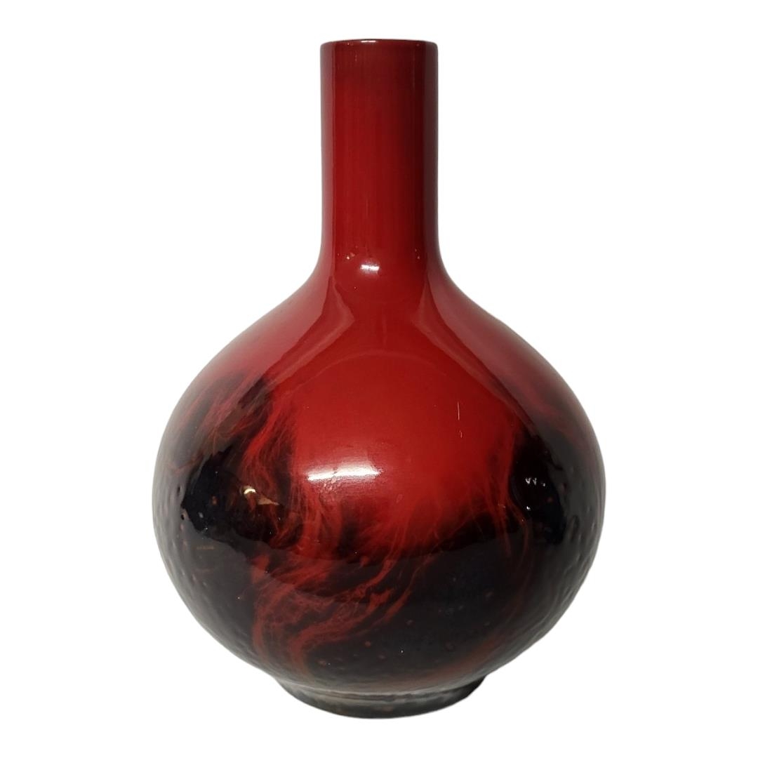 ROYAL DOULTON, A MID 20TH CENTURY FLAMBE VEINED RANGE BOTTLE FORM VASE