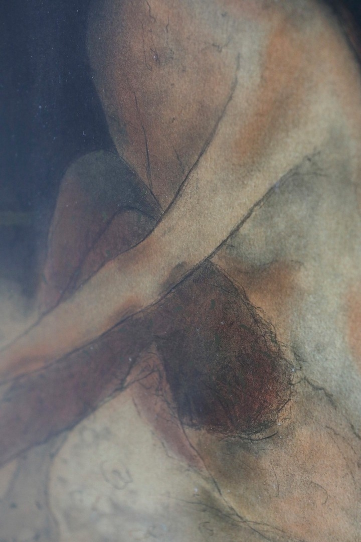 ROY FAIRCHILD-WOODWARD (B.1953). SITTING NUDE. mixed media, 93cm x 74cm, framed.