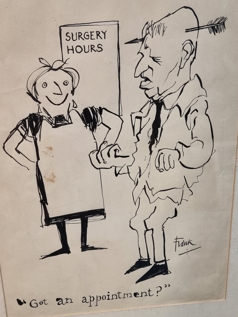 Frank William Huline-Dickens (cartoonist), 'Got an appointment?', signed, pen and ink, 35.5 x 25cm.