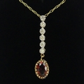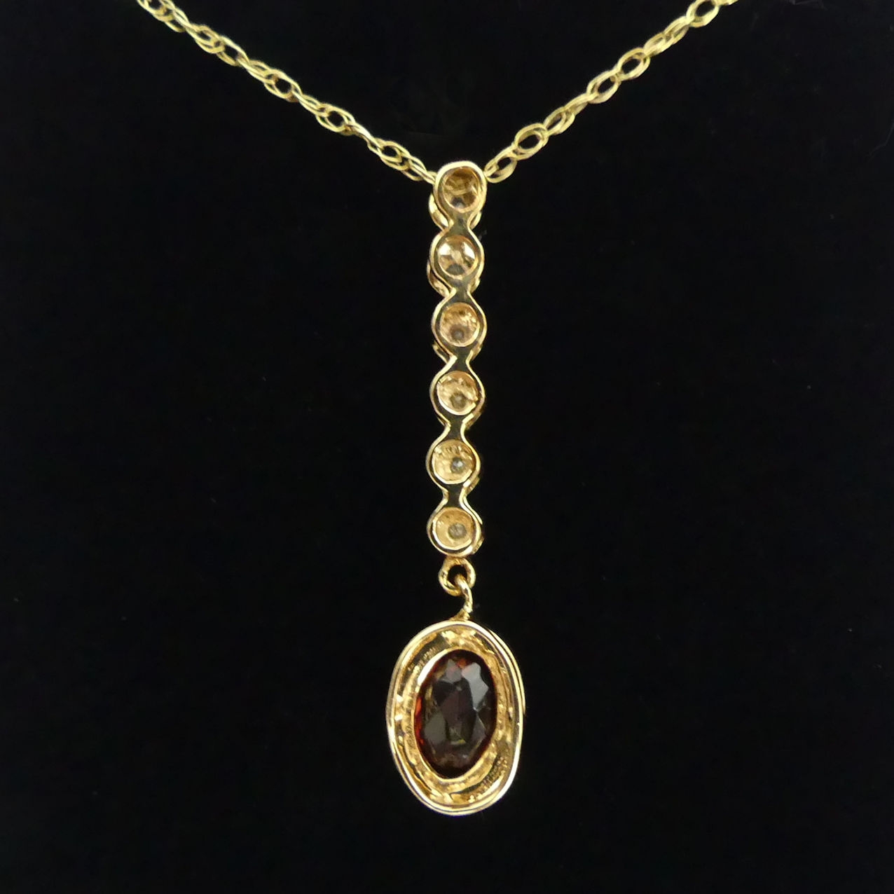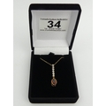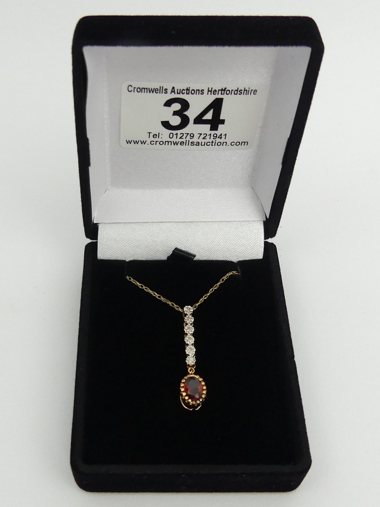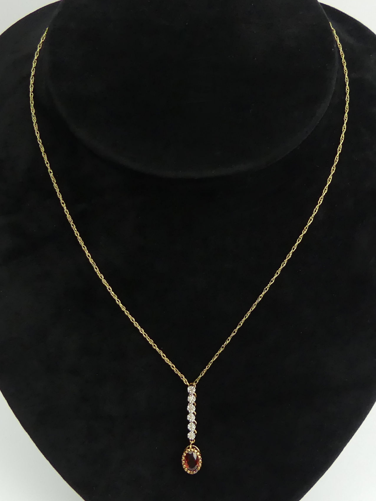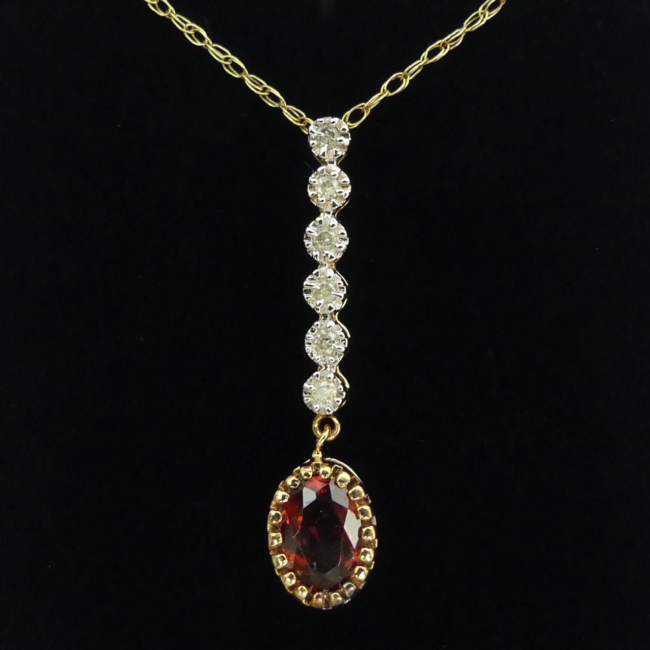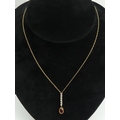 9ct gold diamond and garnet pendant and chain, 1.8 grams