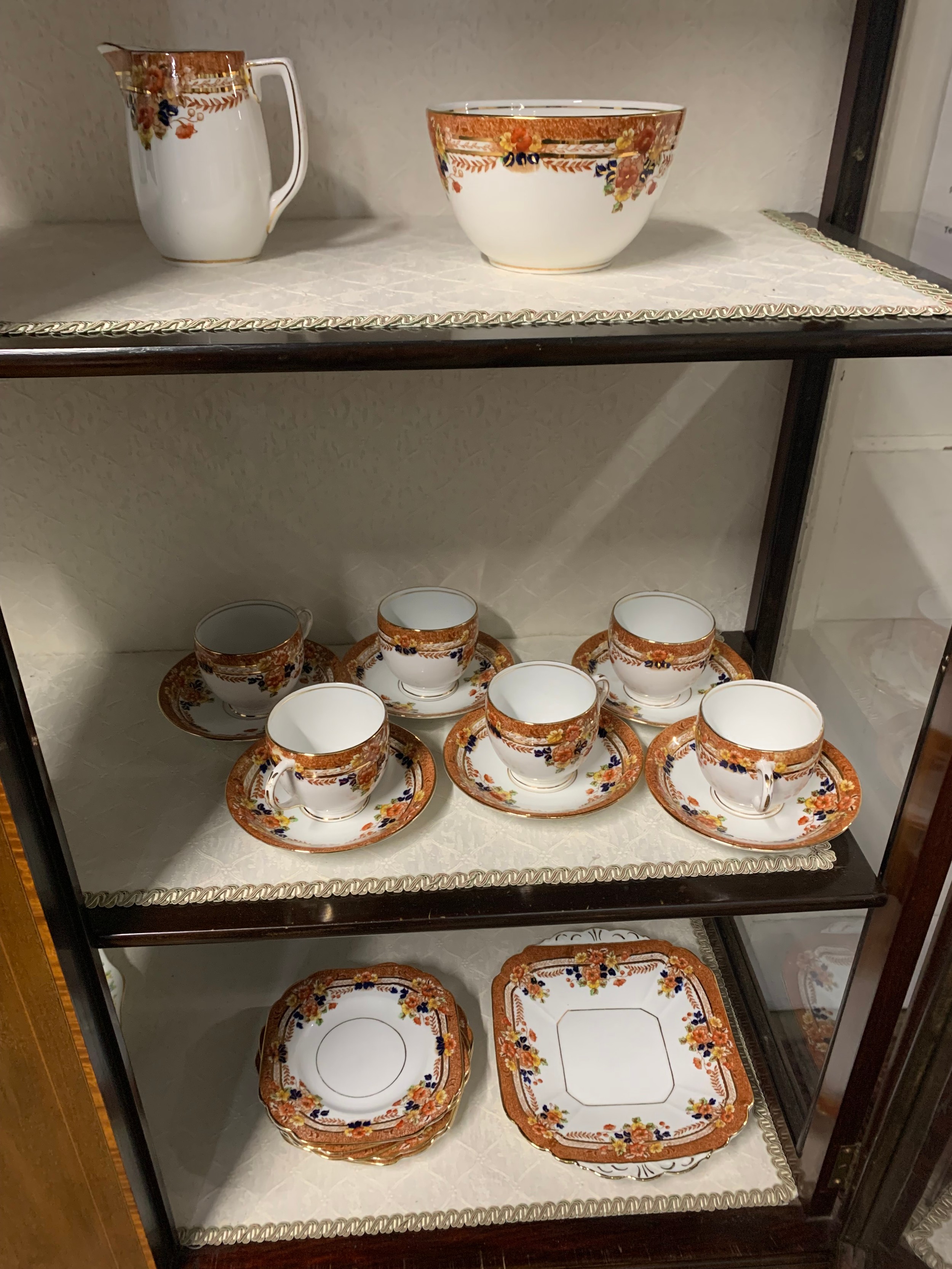 A Melba part tea service with six cups and saucers, and a Foley part tea service with five cups and six saucers. (41)
