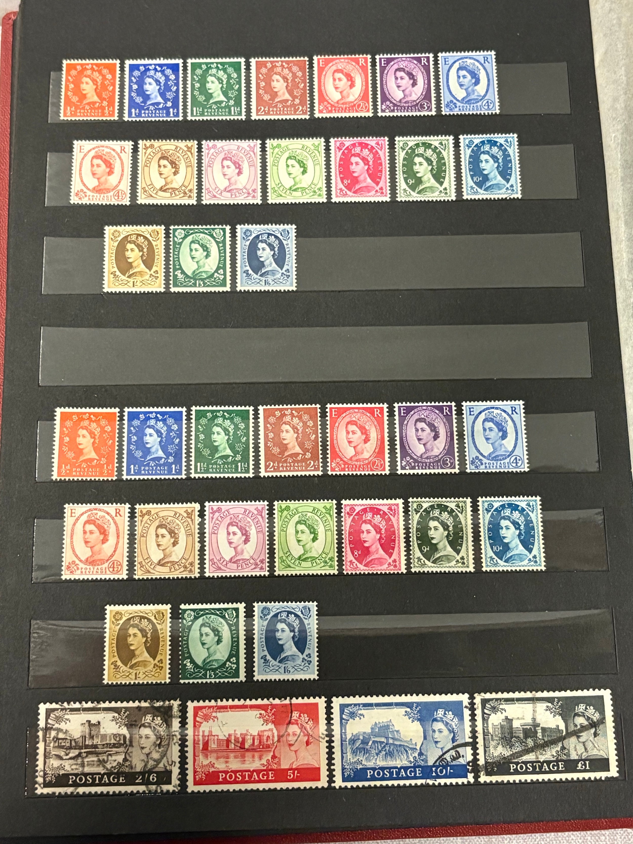 Good collection of early mint and used QEII British stamps to include 1950's/60's definitive to £1 castles and commemoratives - Lifeboat, Red Cross etc.