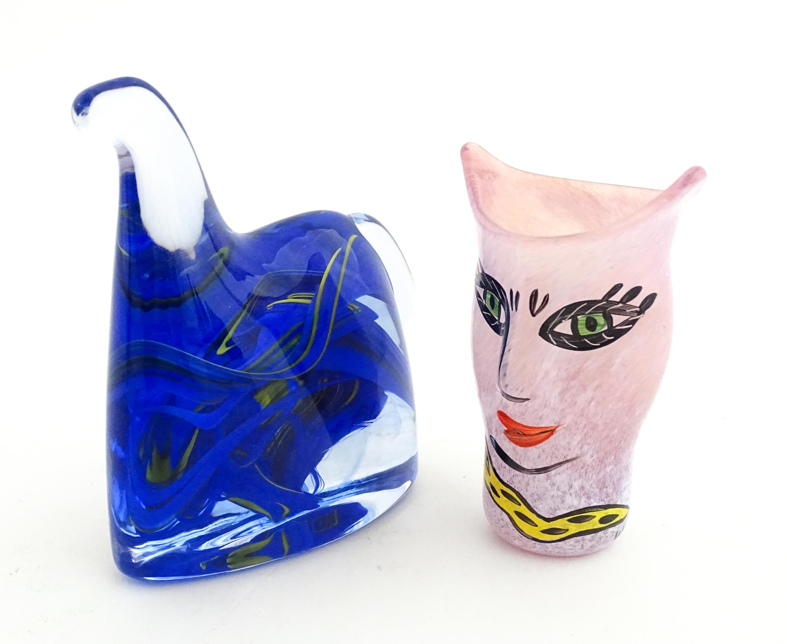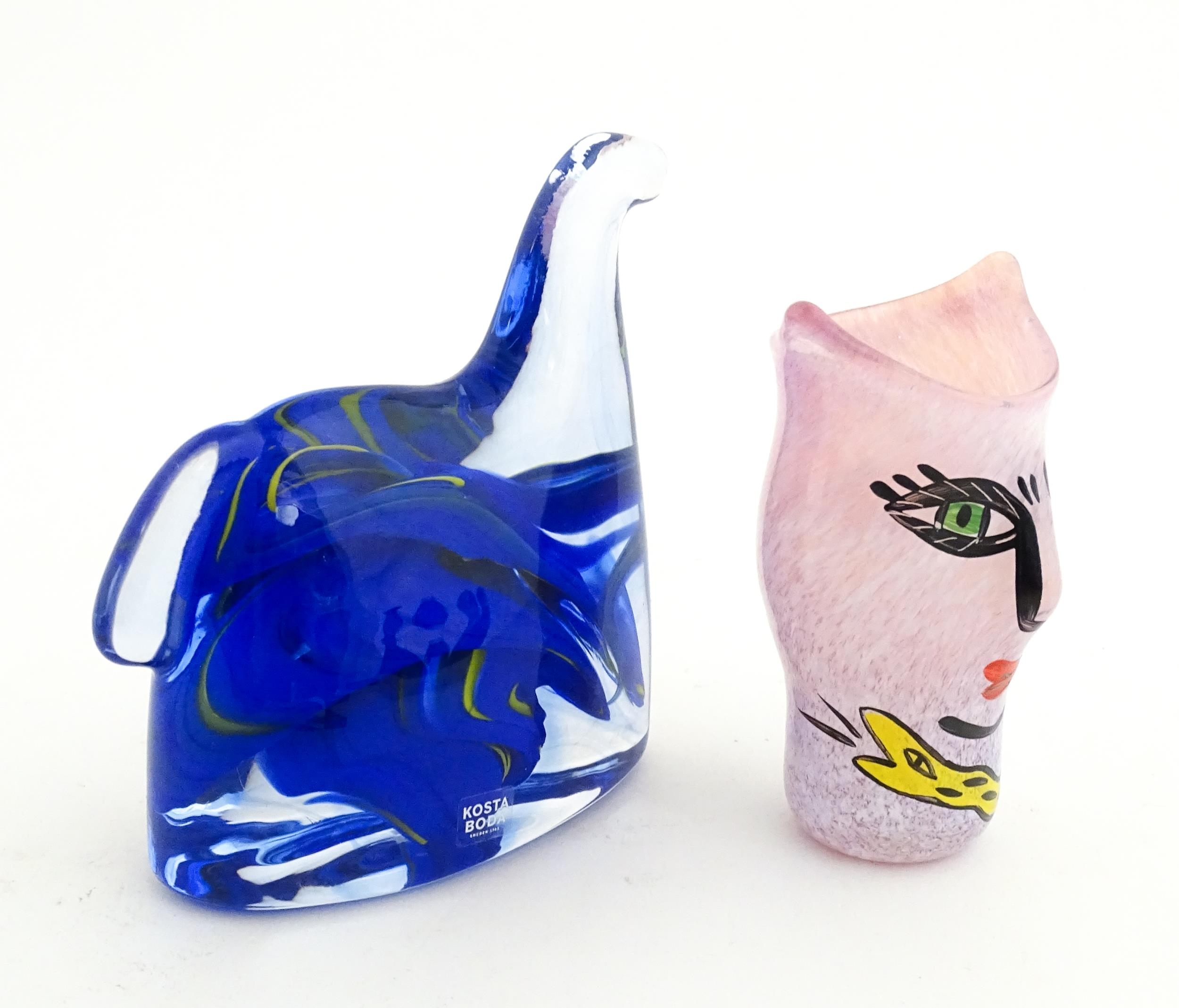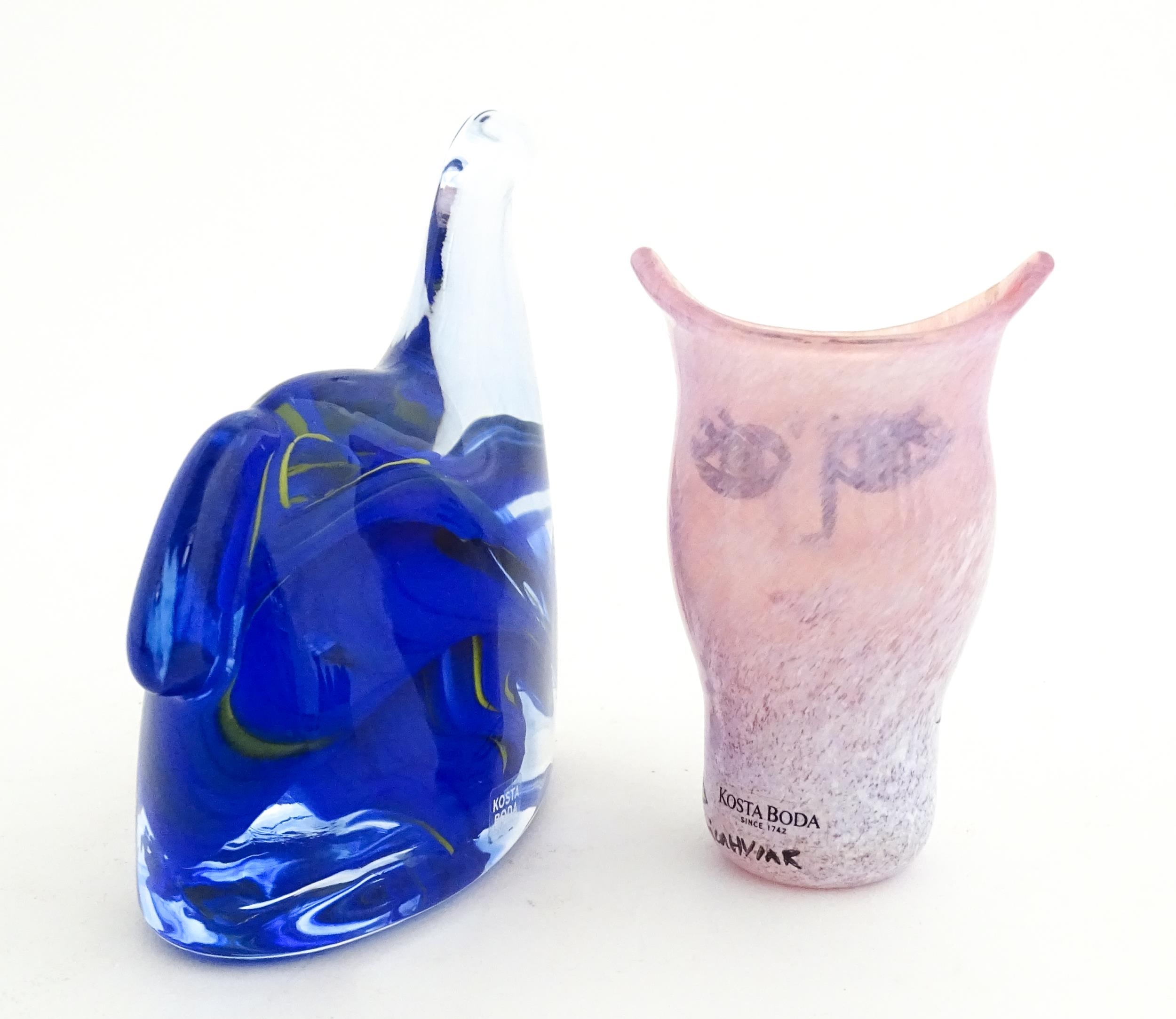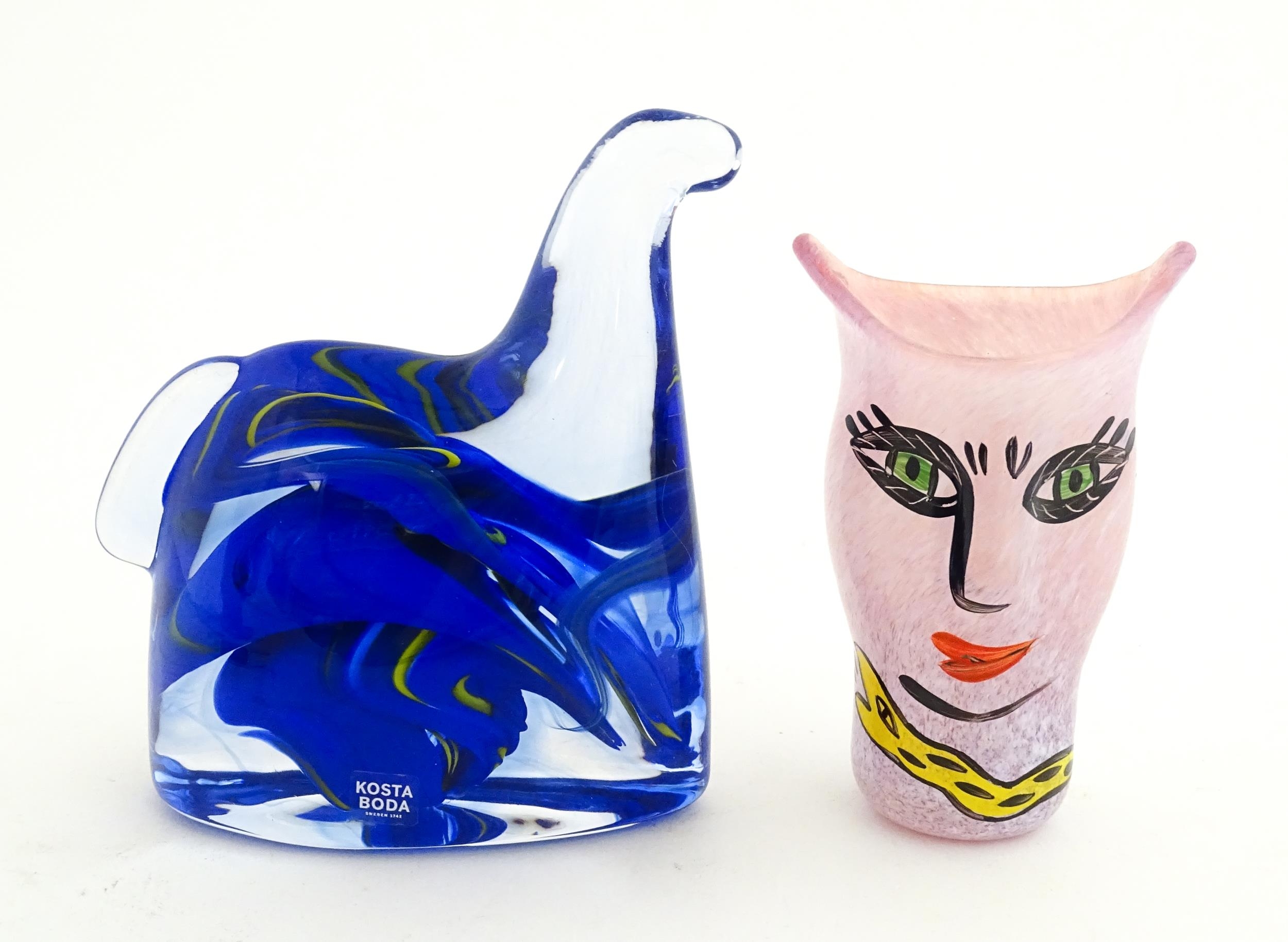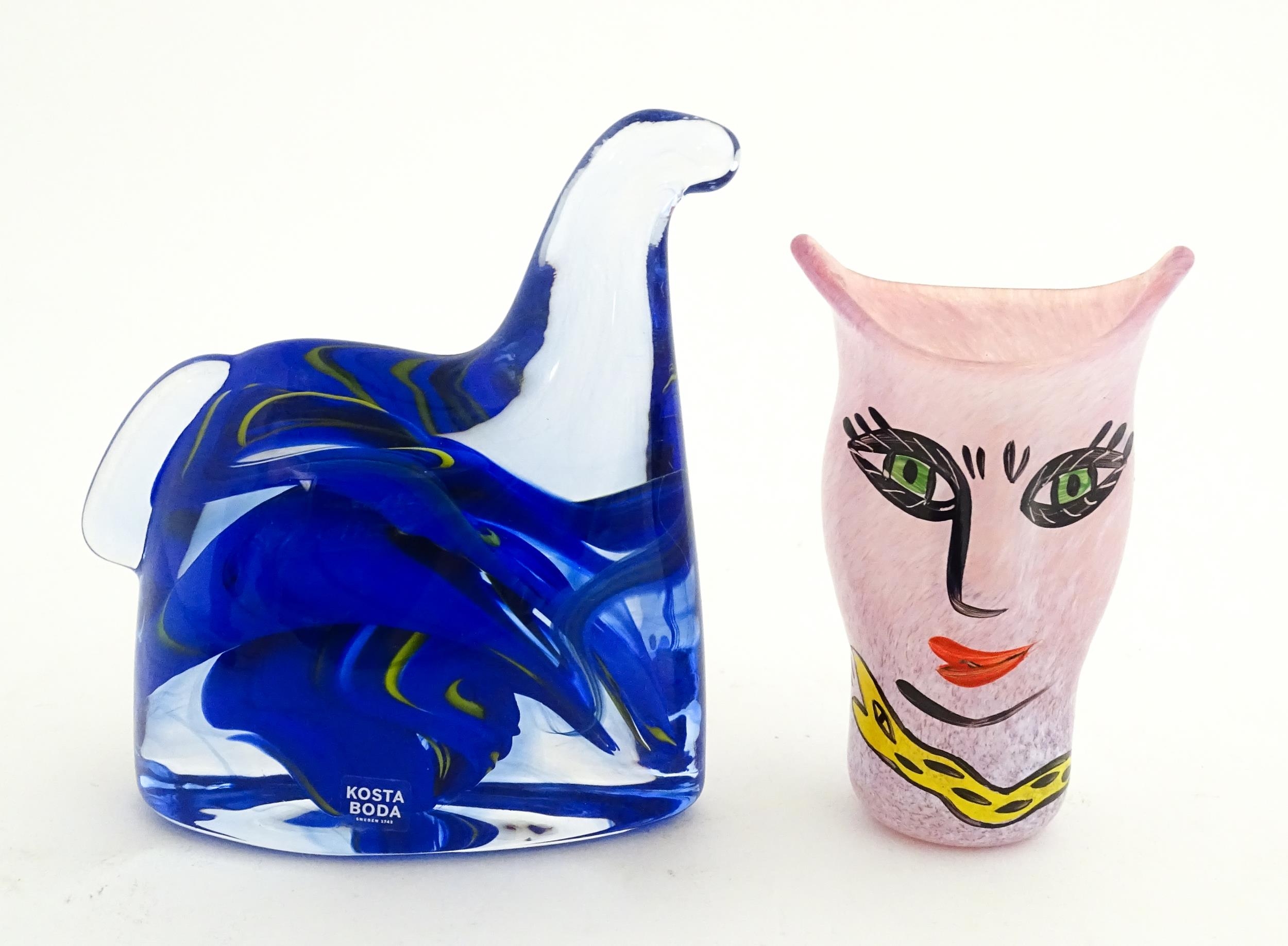 Two Kosta Boda items comprising an Open Minds vase designed by Ulrica Hydman Vallien (1938-2018), and a stylised horse sculpture. Approx 4" high (2)