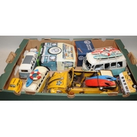 A tray of large scale tinplate motor racing vehicles c/w a boxed Bburago Bugatti