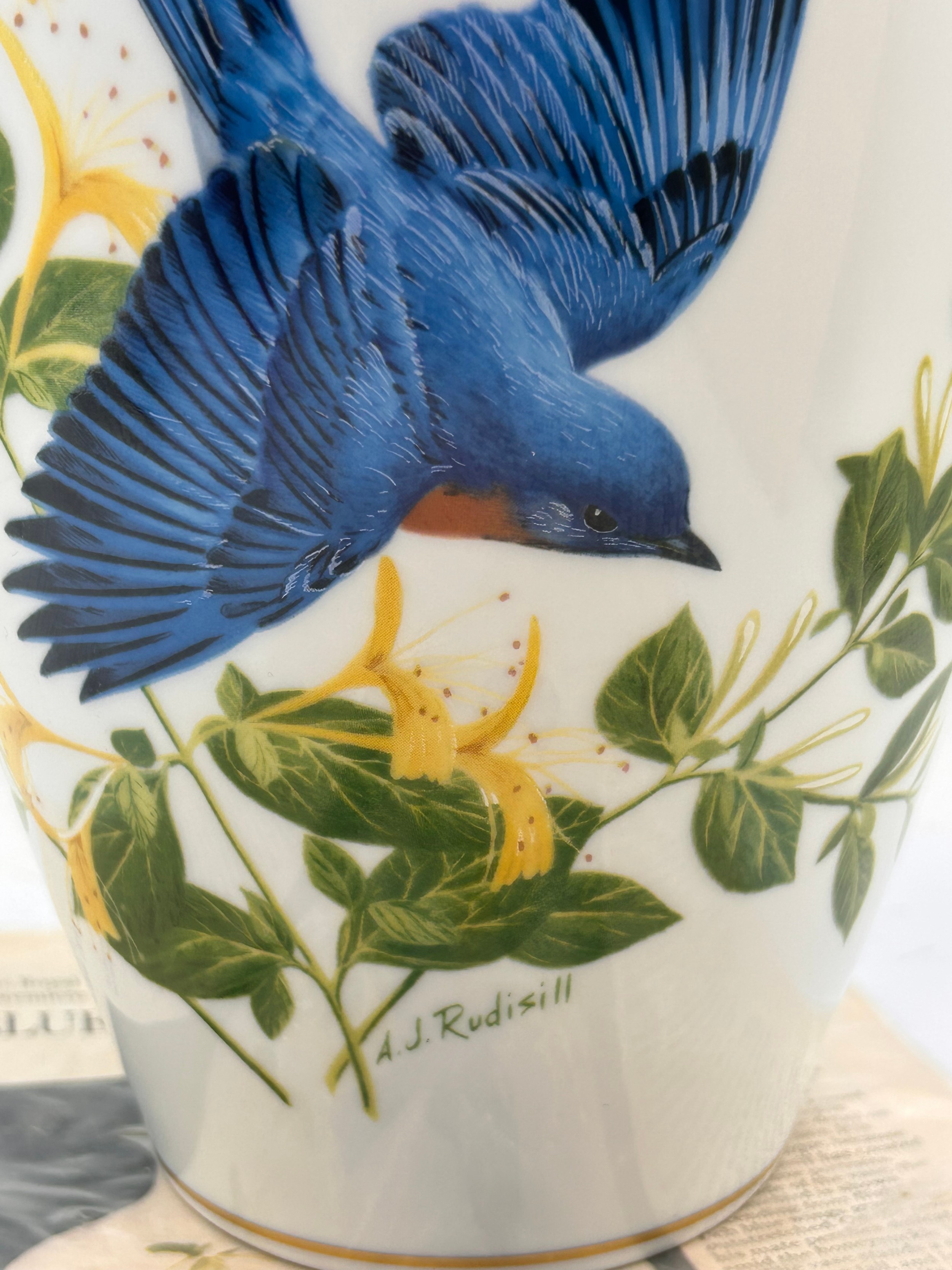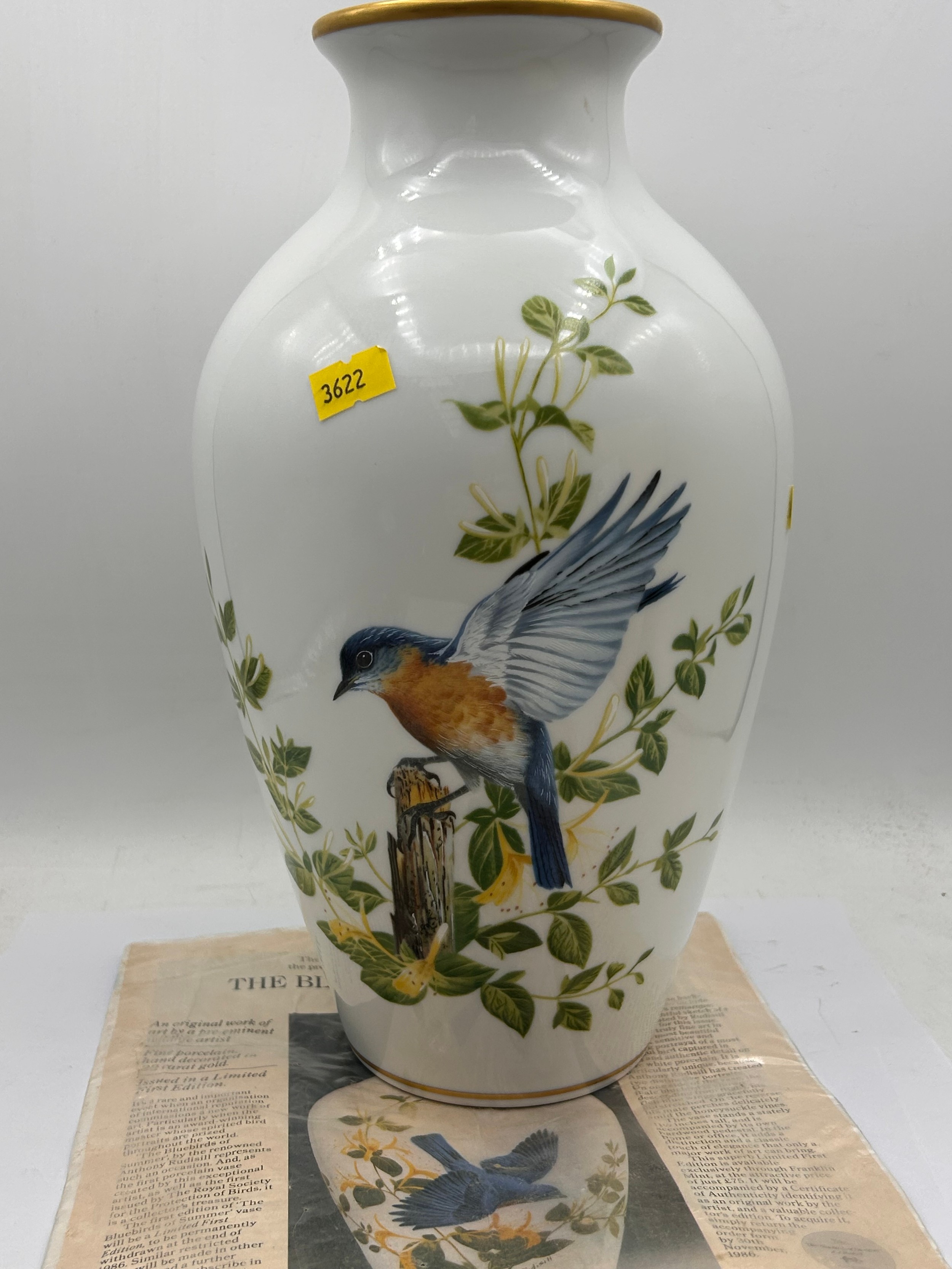 Limited Edition Vase By Franklin Mint , The Bluebirds Of Summer, 11.5".