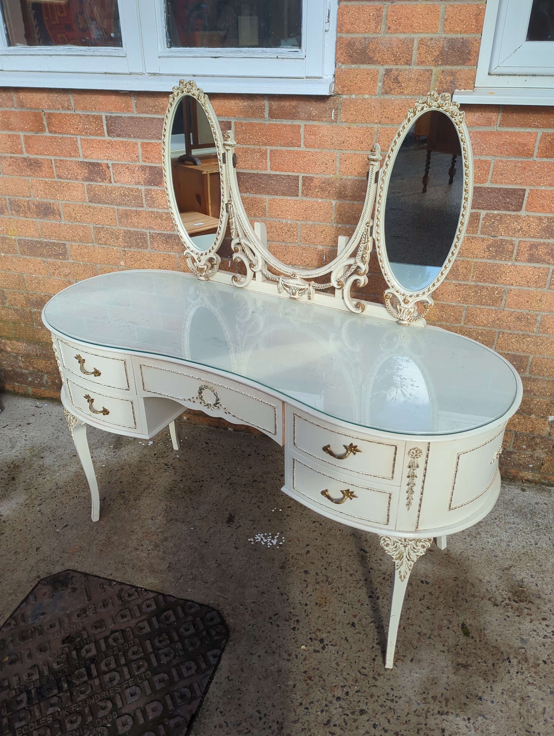 Ornate Dressing Table with Triple Mirror