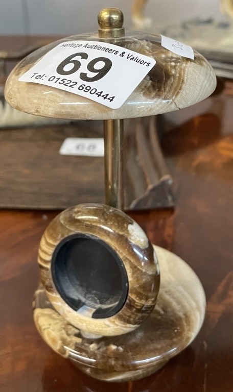 An onyx desk pocket watch holder