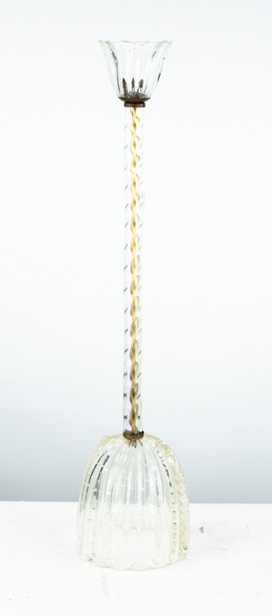 STYLISH MID TWENTIETH CENTURY ITALIAN MURANO CLEAR GLASS PENDANT CEILING LIGHT, probably by BAROVIER & TOSO, 28 ½" (72.5cm) high