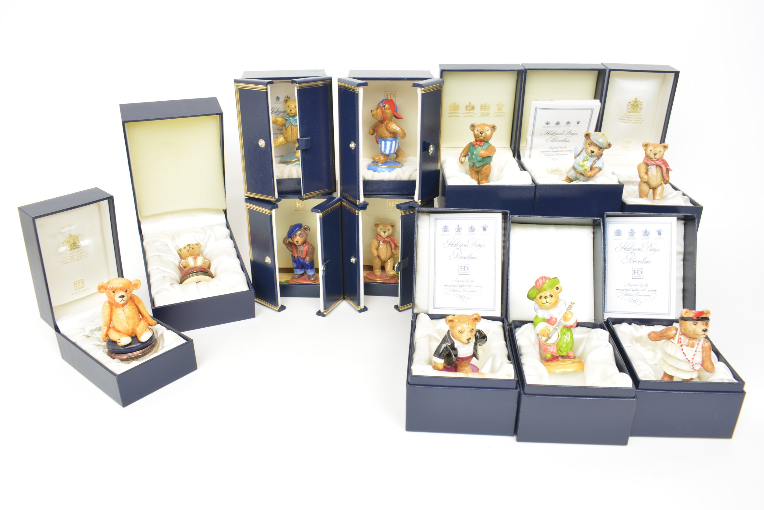 Halcyon Days 'Teddy Bears' hinged trinket boxes, all with boxes (x12)