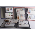 A large general collection of Great Britain and World stamps, covers and booklets comprising 9 general World albums/stockbooks of mint and used; 3 albums with mainly First Day Covers (GB, IoM, Cocos, Tokelau etc); an album of GB stamp booklets (plus a few from elsewhere); box of stamps on album pages; tin of World kiloware;mint GB in packets/envelopes; various packets of stamps and covers.