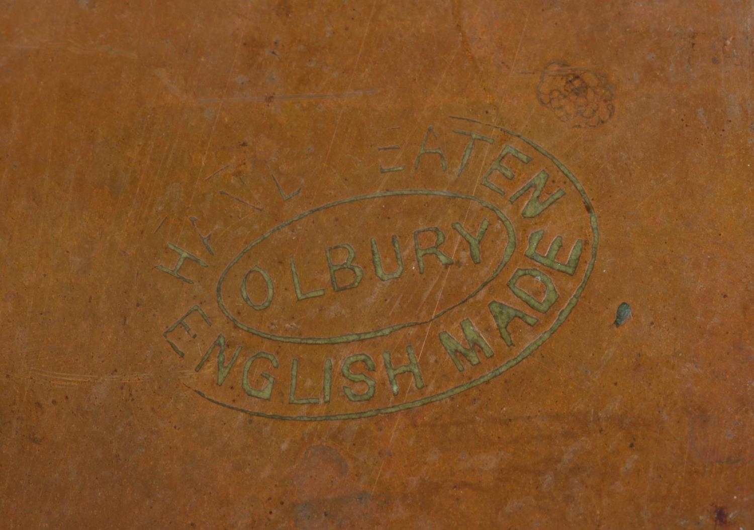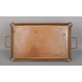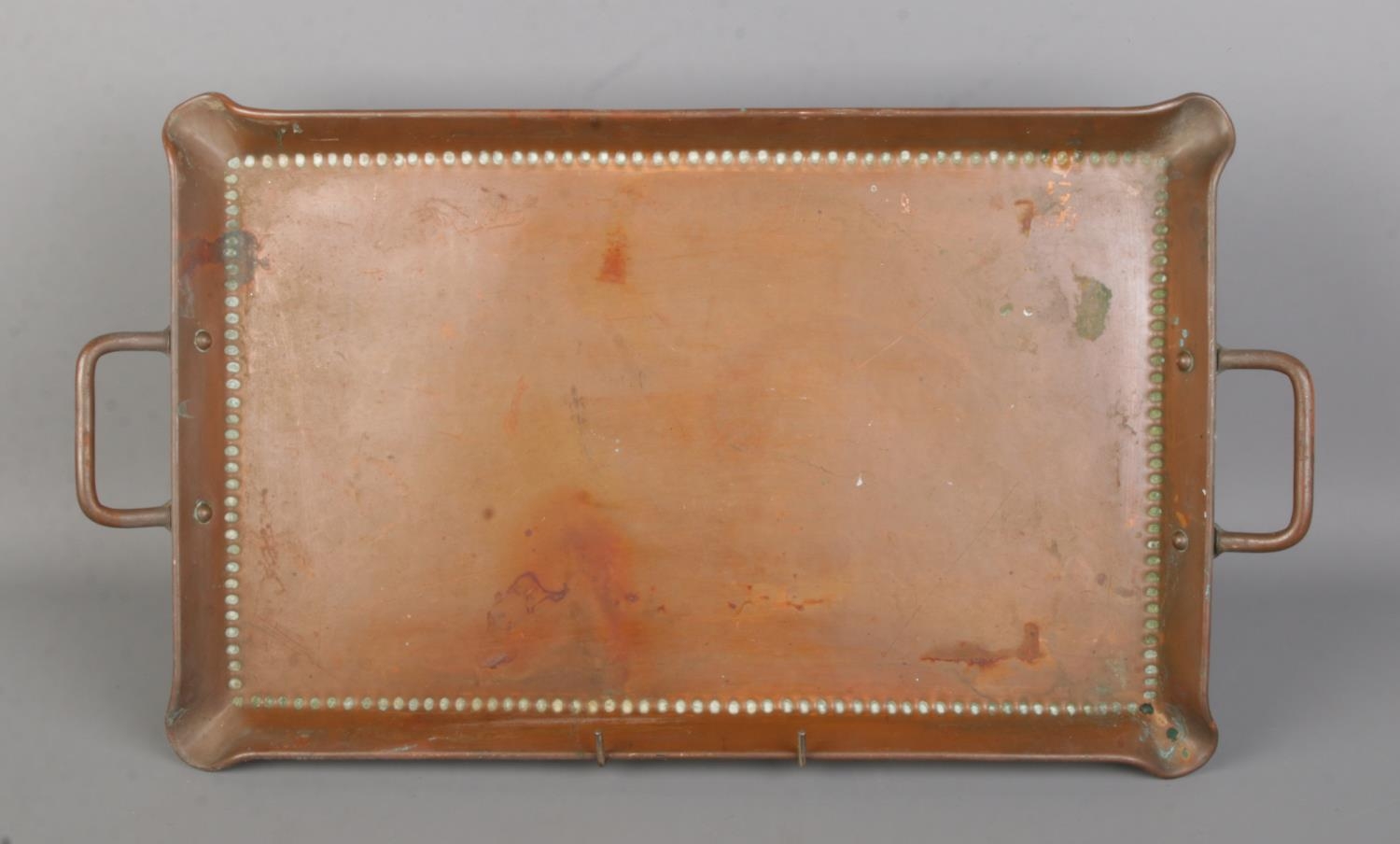 A twin handled arts and crafts hand beaten copper tray, by Olbury, England. Width: 50cm.