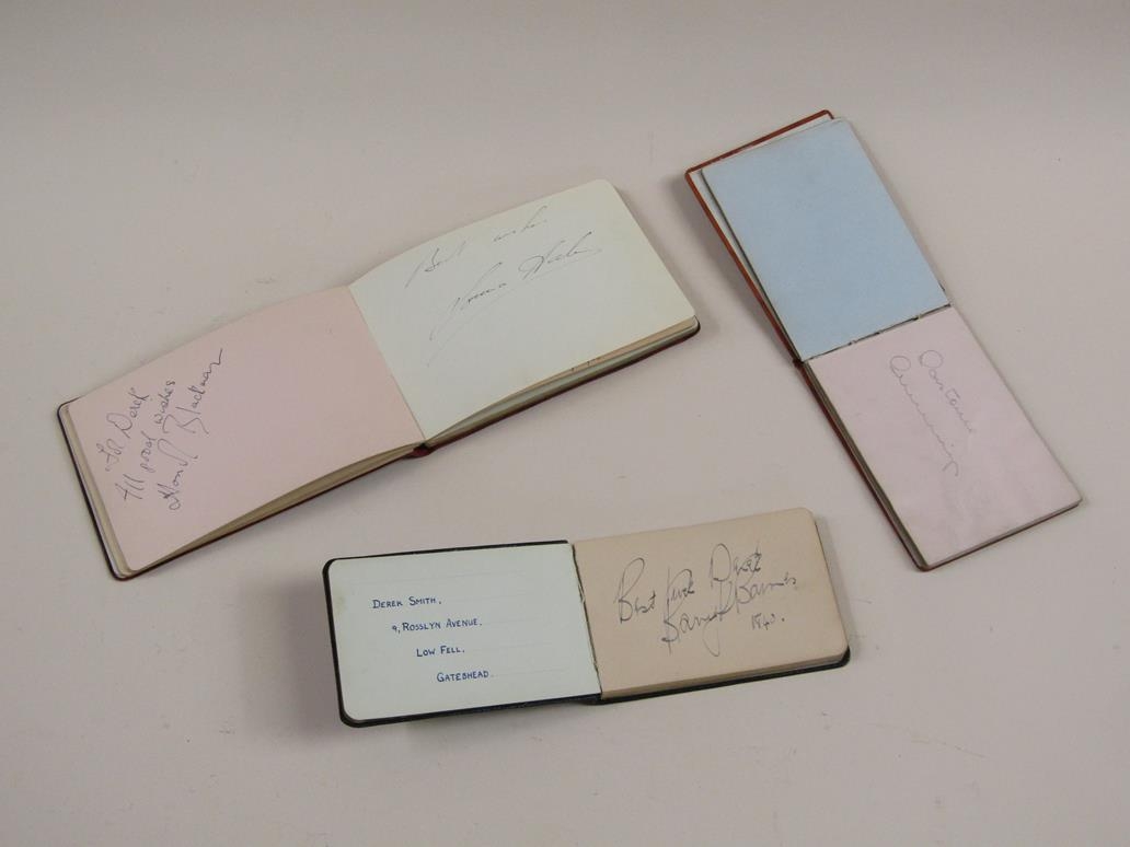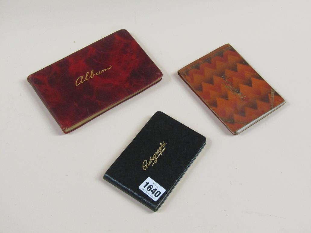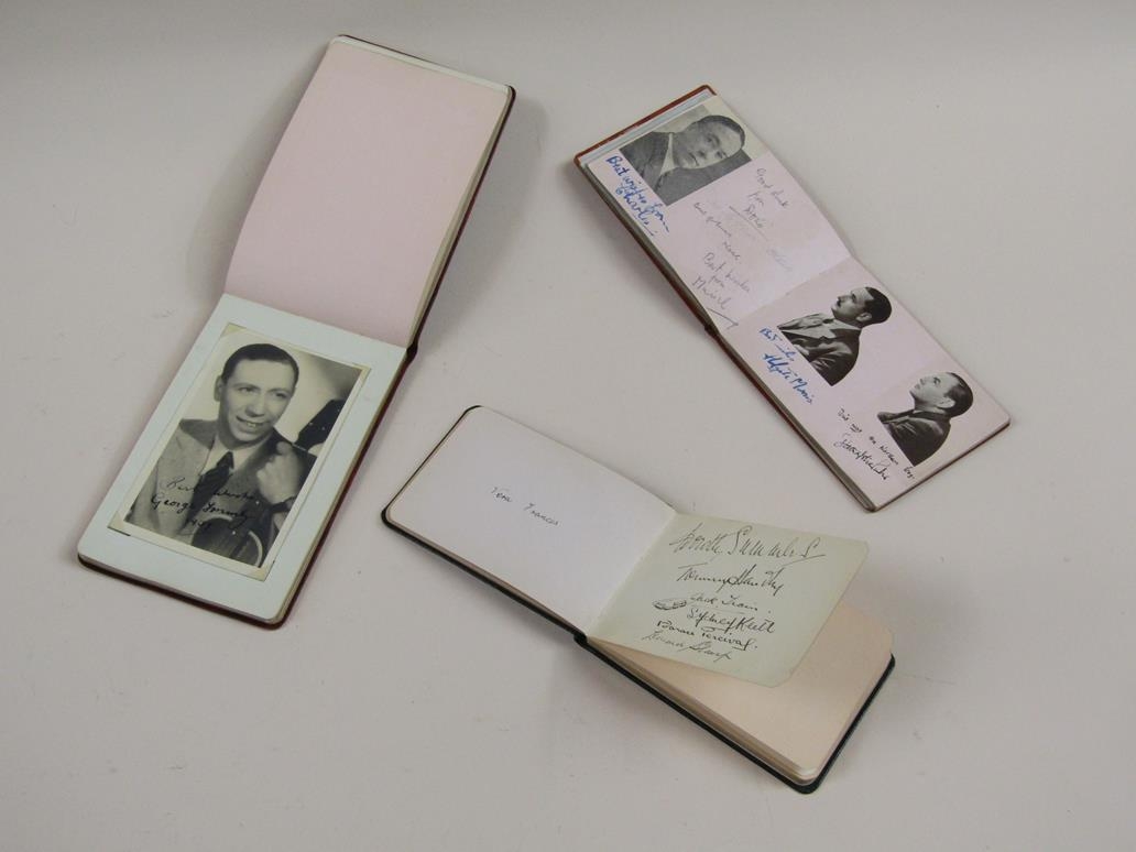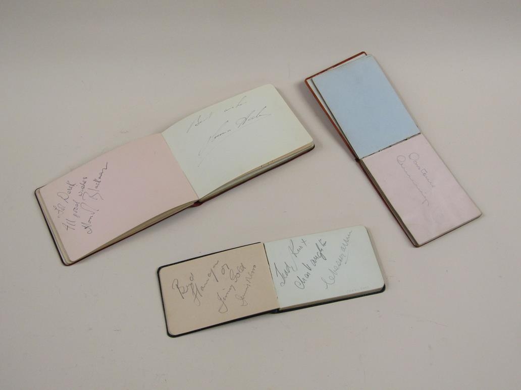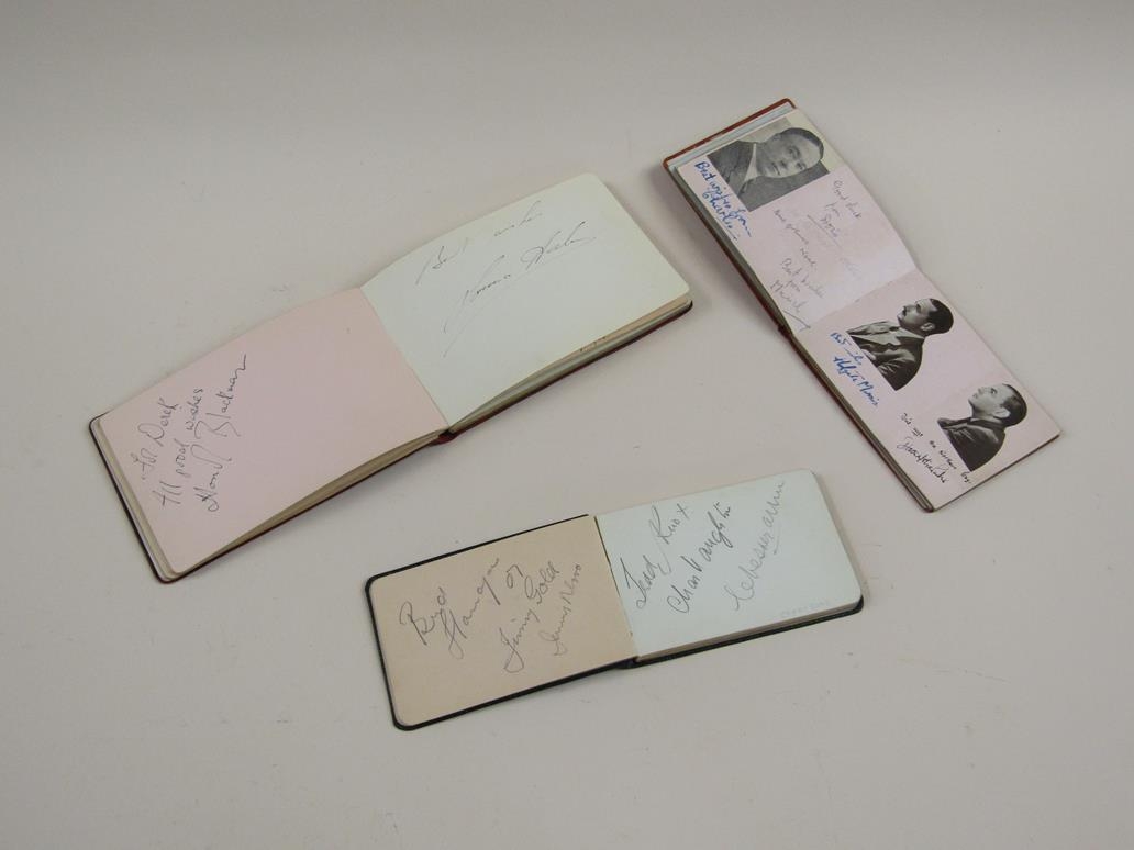 THREE AUTOGRAPH BOOKS WITH ENTRIES BY STARS OF THE EARLY 1930s WITH TWO POSTCARDS SIGNED MALCOLM CAMPBELL