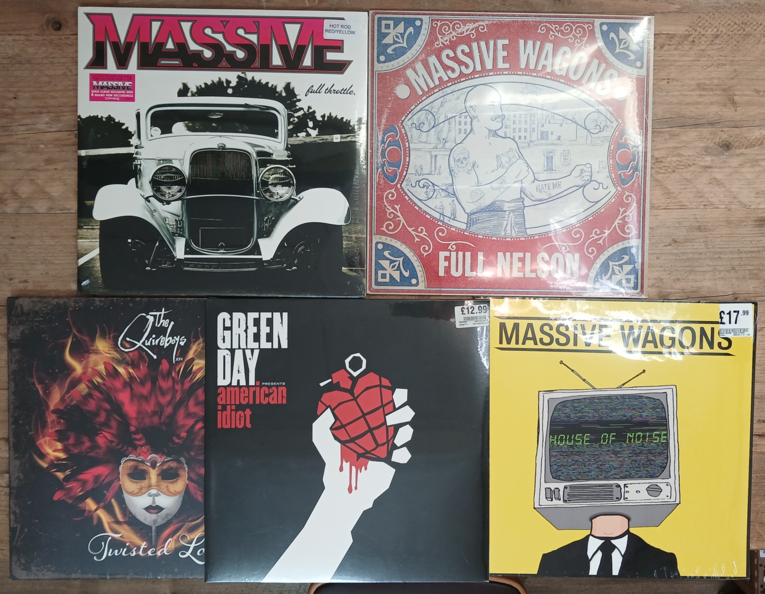 A group for five modern releases; Massive Wagons, Green day and The Quireboys, all sealed.