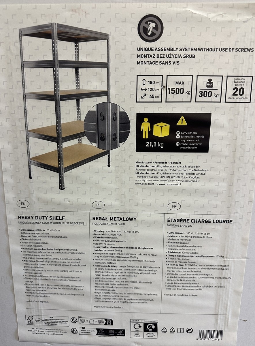 Heavy duty metal shelf 180cm x 120cm x 45cm as new in box
