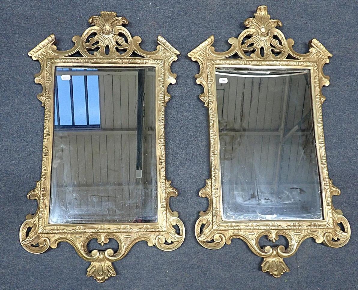A PAIR OF ITALIAN GILT FRAMED WALL MIRRORS(cast composition), each 78 x 45cm (one with small loss to top) (2)