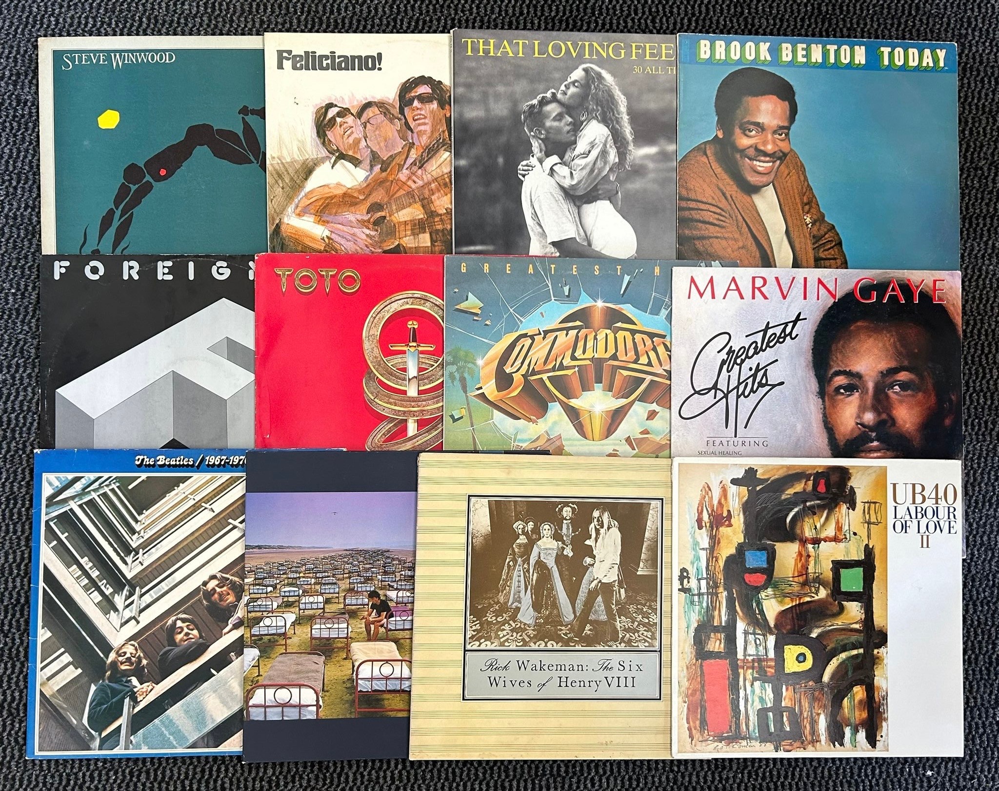 VINYL RECORDS LPS. Includes. Foreiner, Brook Benton, Four Tops, Beatles 1967-1970, Pink Floyd, Paul Simon, UB40, Emerson Lake & Palmer, Walker Bros, Billy Joel, and many others. Conditions vary, some wear to sleeves. (30). GC-VGC £40-60