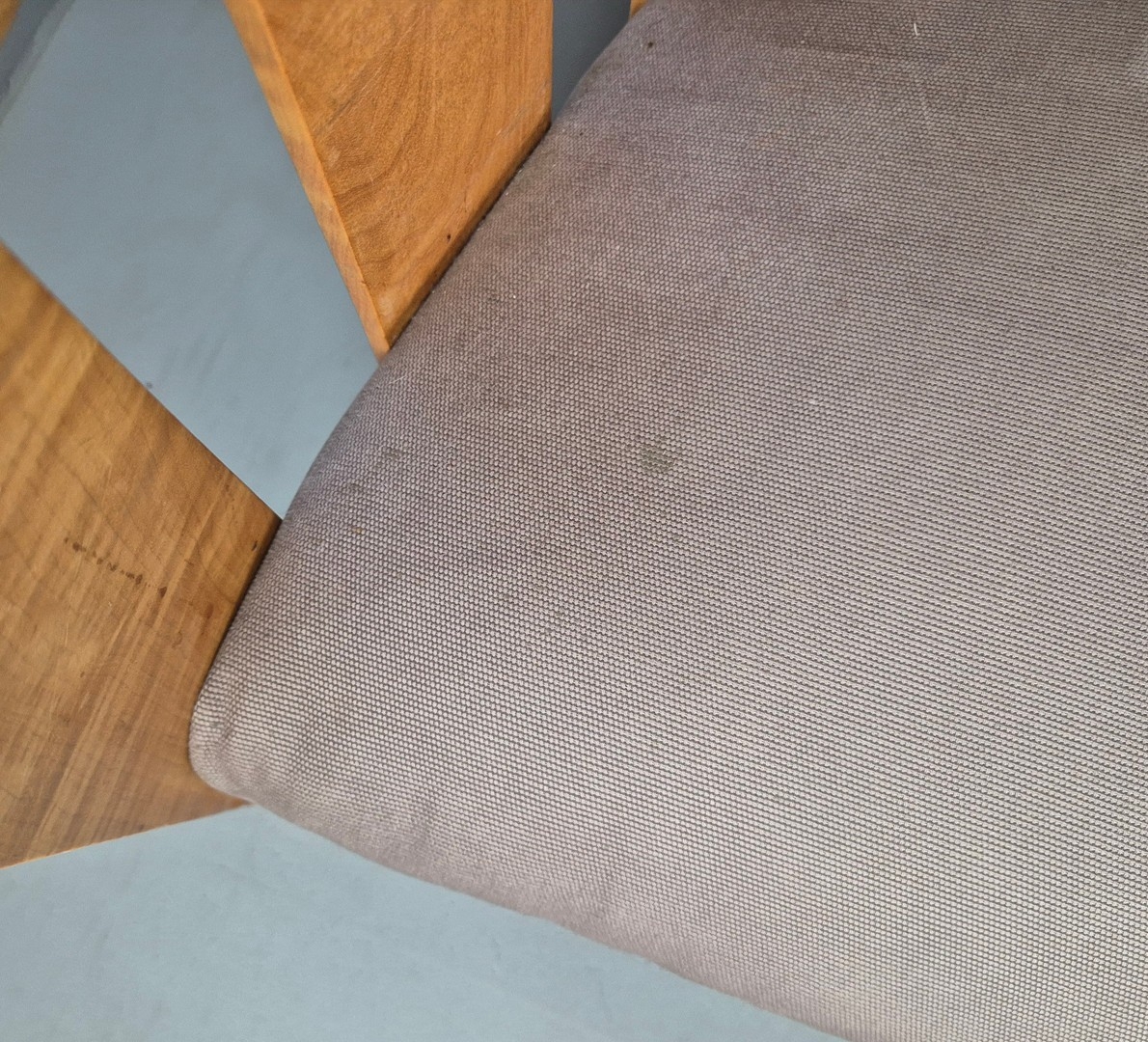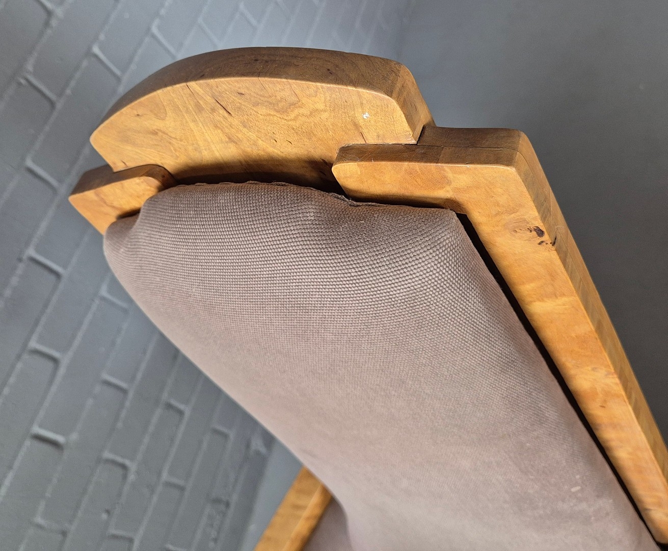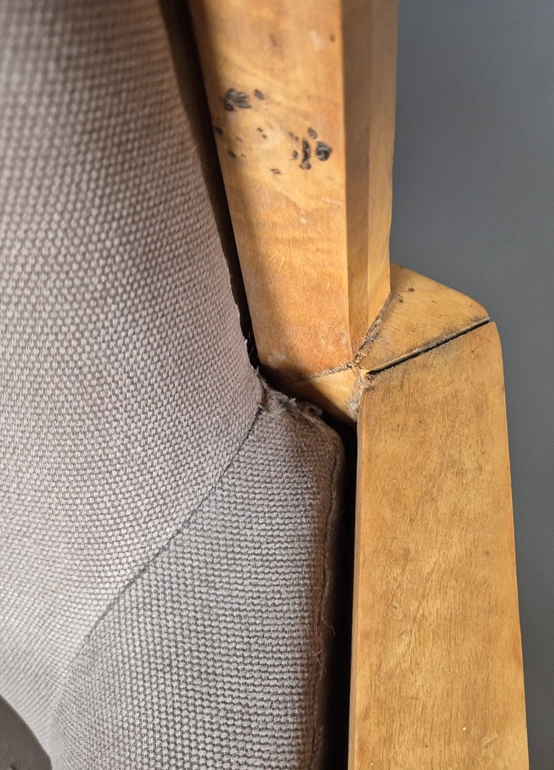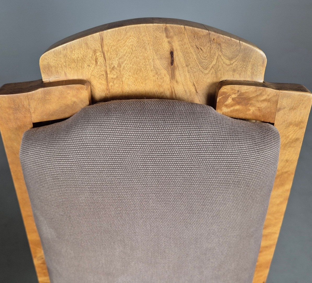 PAIR OF 1920s ART DECO SWEDISH GRACE BIRCH ARMCHAIRS. Of slatted construction with grey upholstered seats and backs 114cm H x 69cm W x 75cm D.