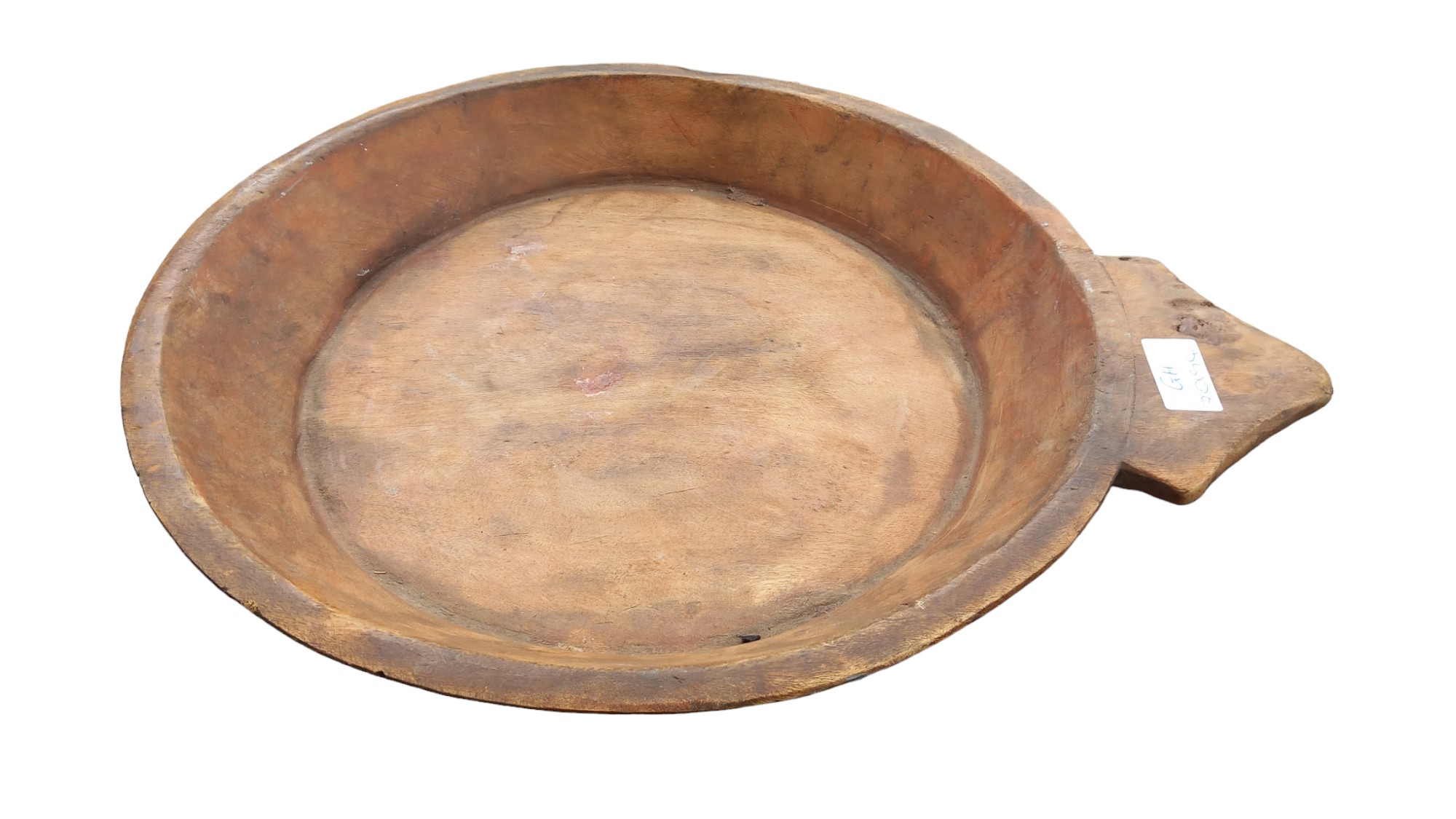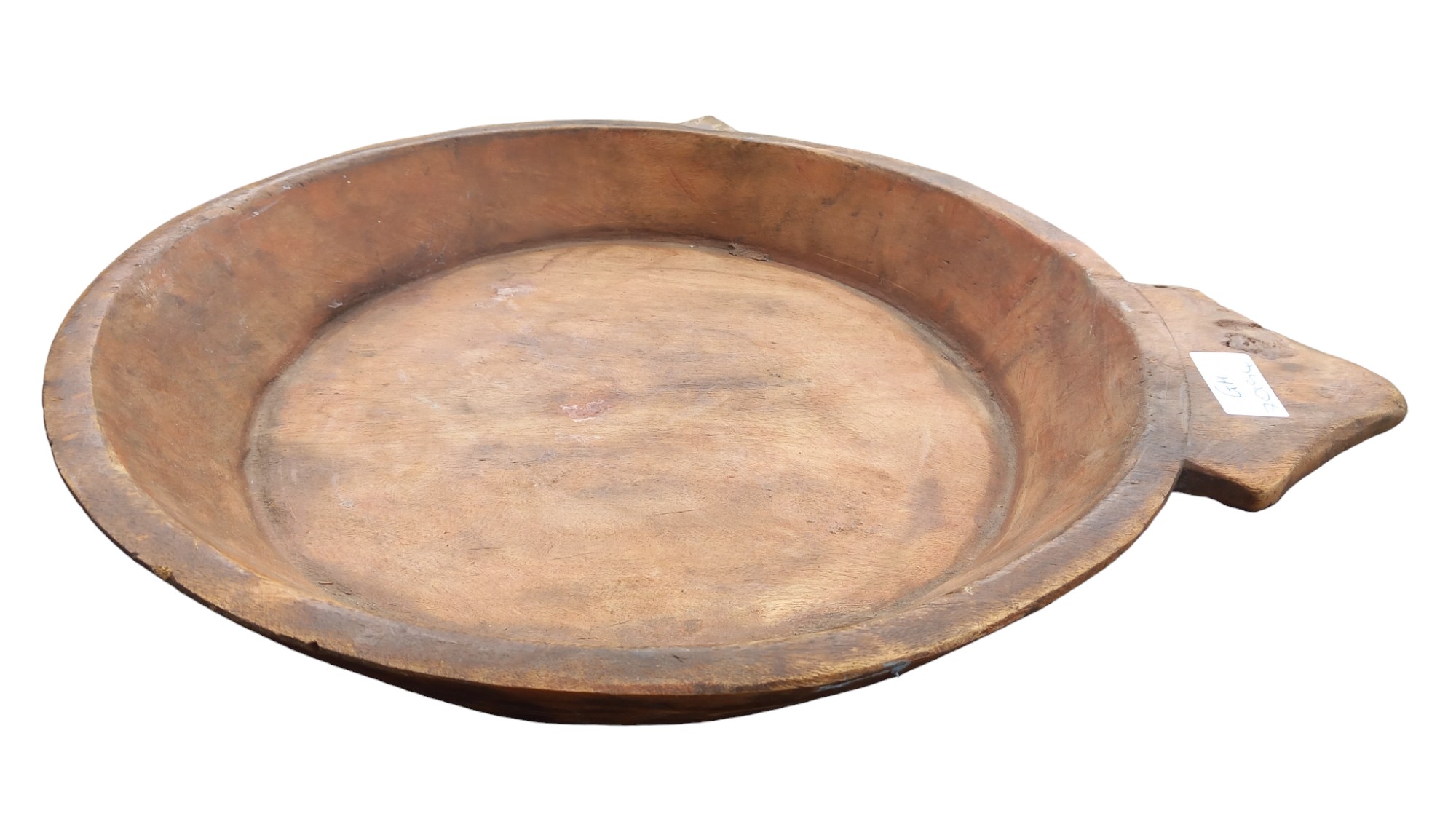 A VINTAGE WOODEN COLLECTION PLATE 15" DIA