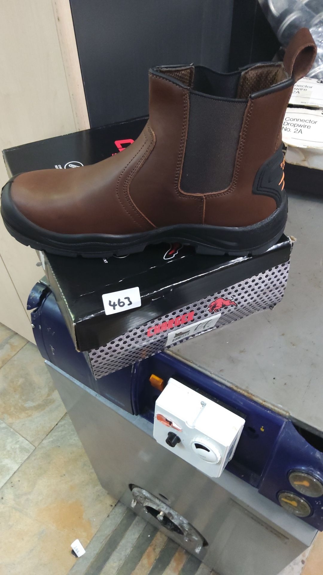 Brown leather upper, slip-resistant sole with Redback logo. New in box.(11)