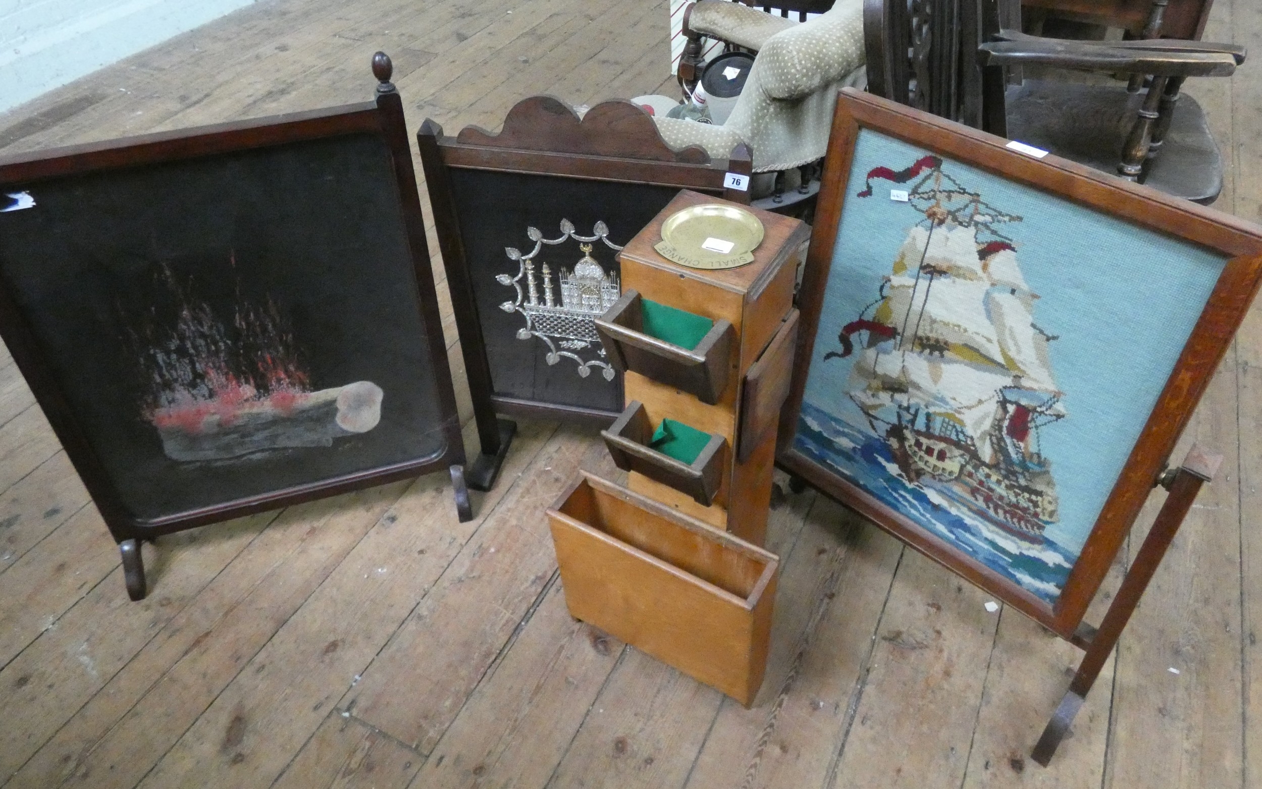 Three various fire screens and a smoker's pedestal