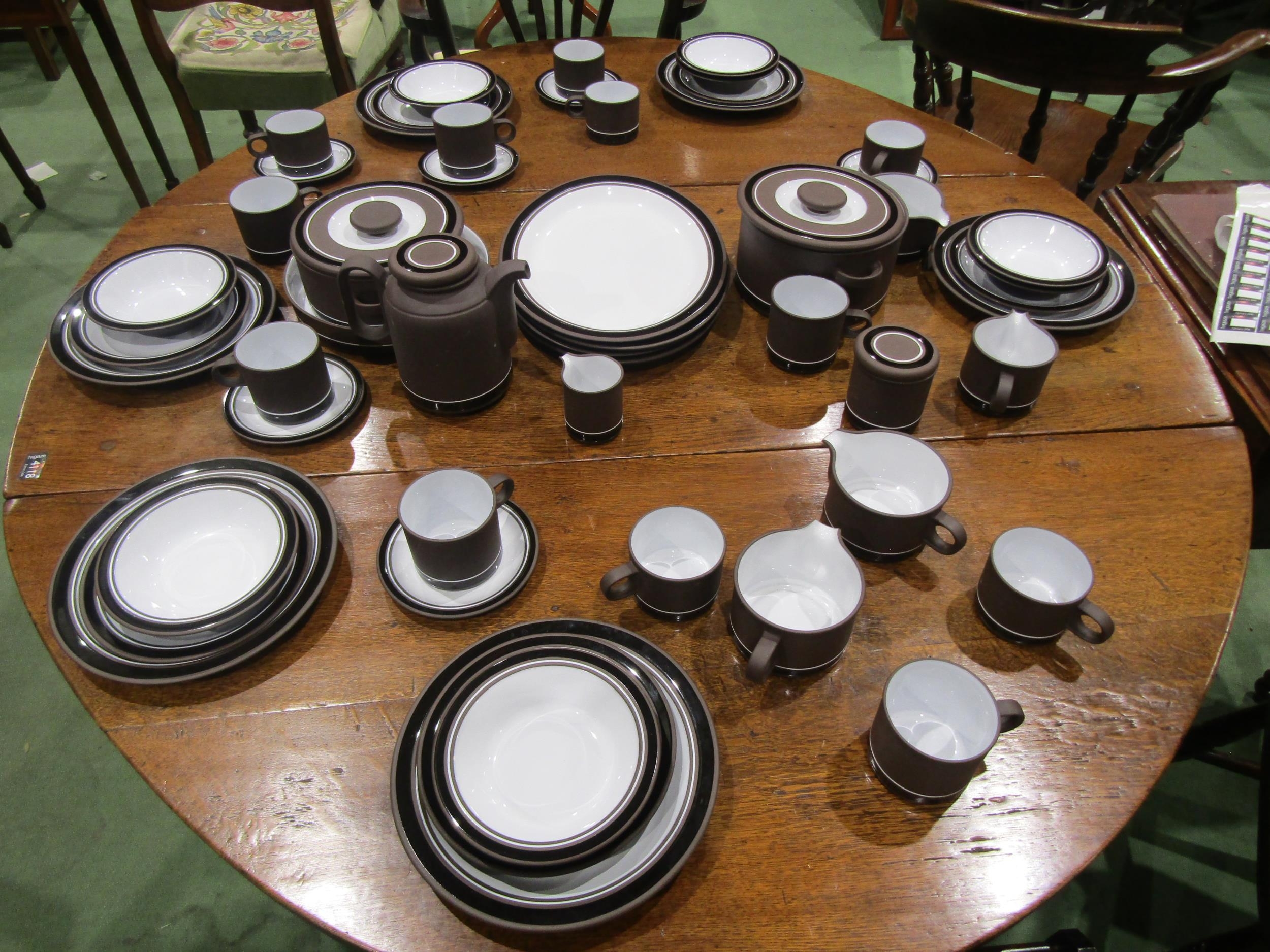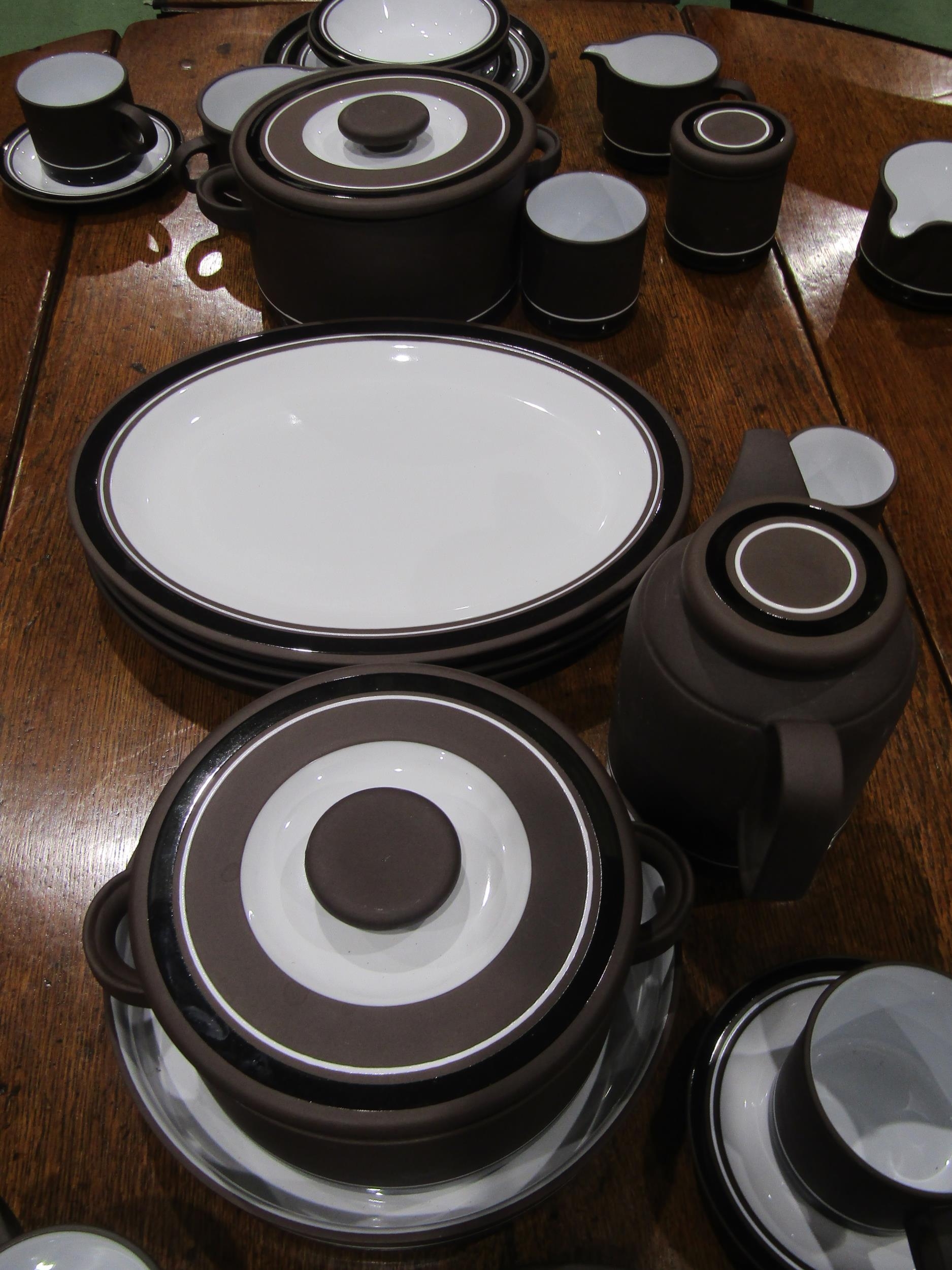 An extensive set of Hornsea 1970's "Contrast" table wares including covered tureen, serving platters, coffee pot, mugs and saucers, bowls etc.