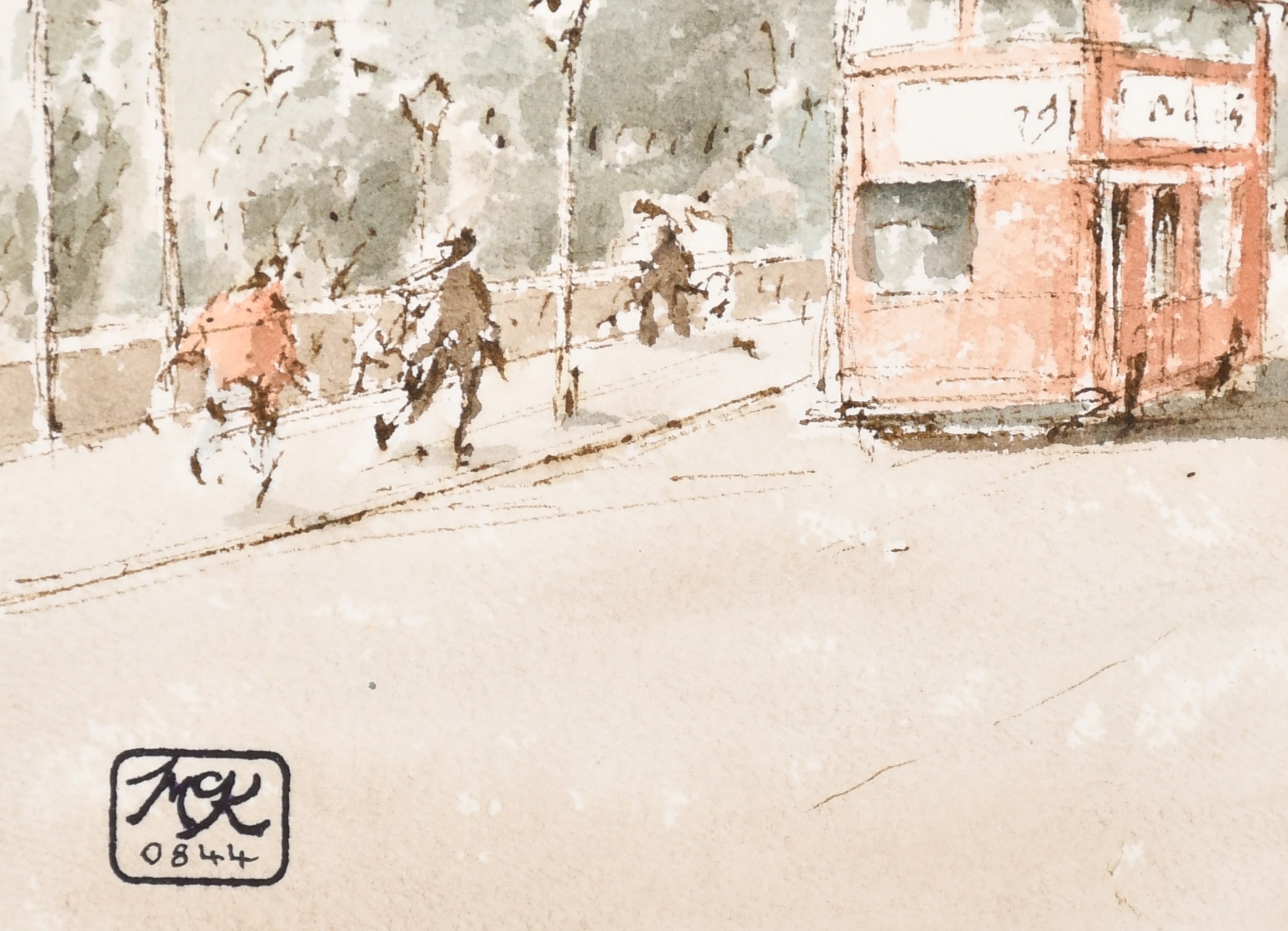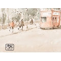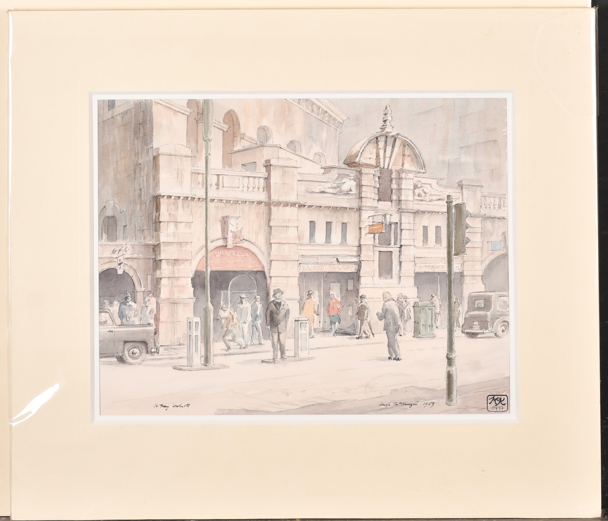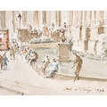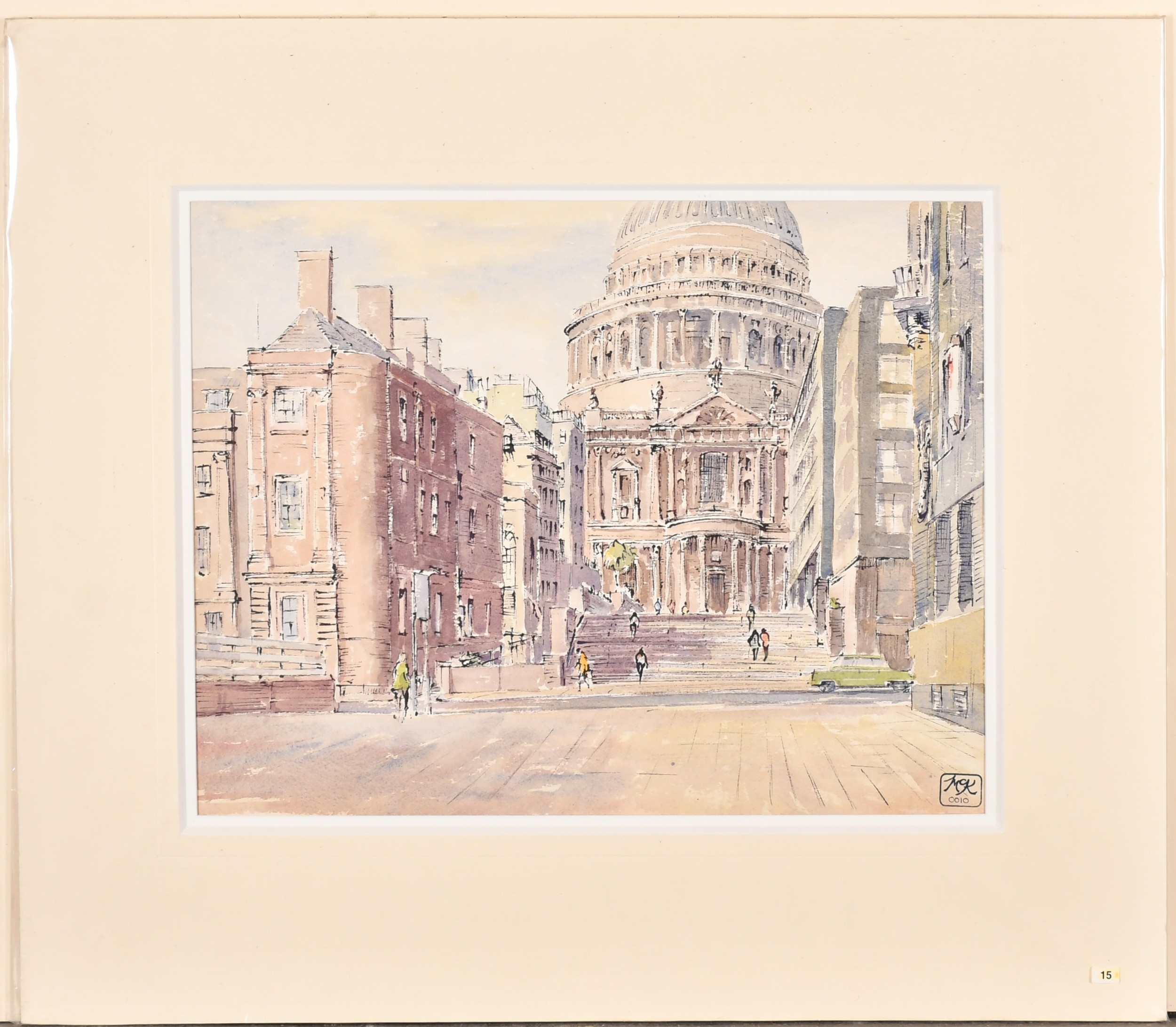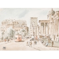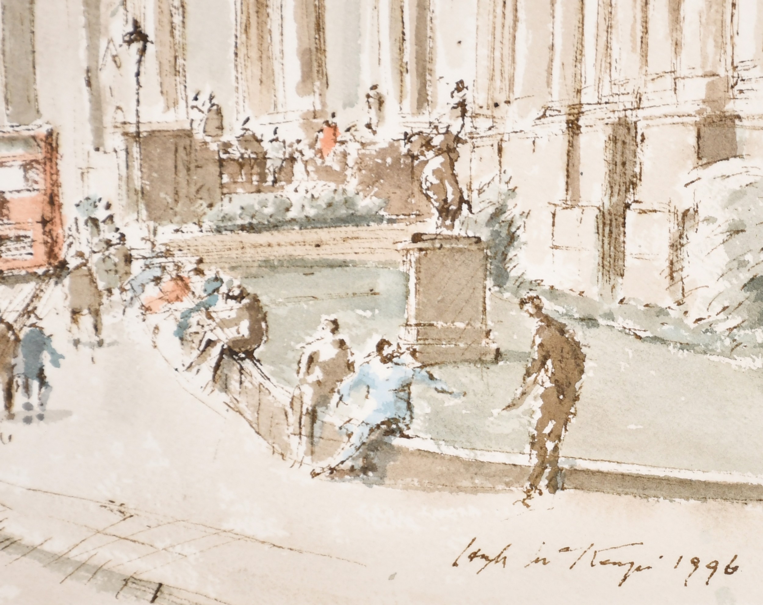 Hugh McKenzie (1909-2005) British. "A View of Trafalgar Square looking towards the National Gallery", Watercolour and ink, Signed and dated 1996, with studio stamp numbered 0844, mounted, unframed 11.5" x 15.75" (29.2 x 40cm), and three others "Mansion House from Threadneedle Street", "St Mary Woolnoth" and "View of the South Transept Entrance of St Paul's Cathedral" (4)