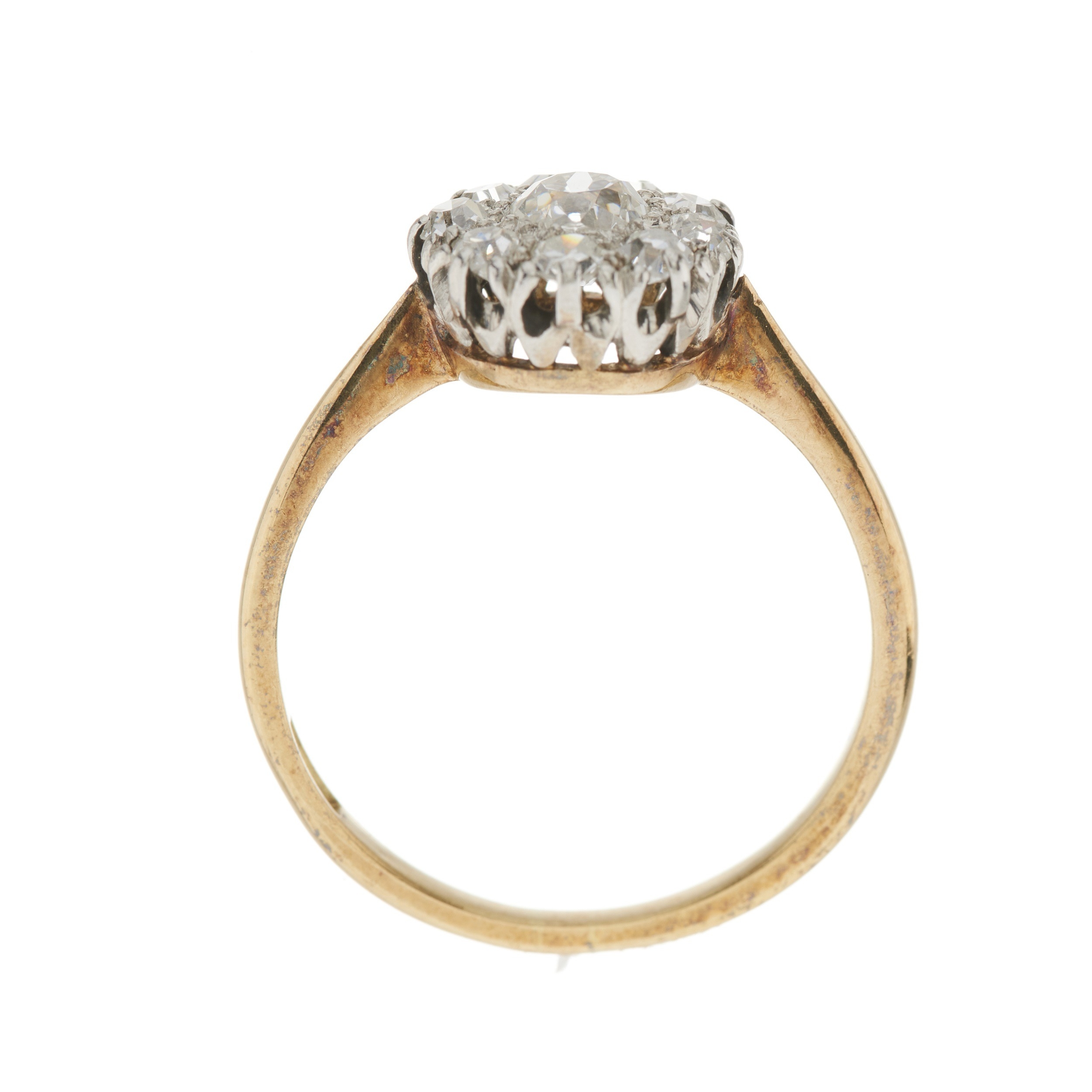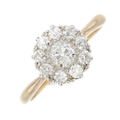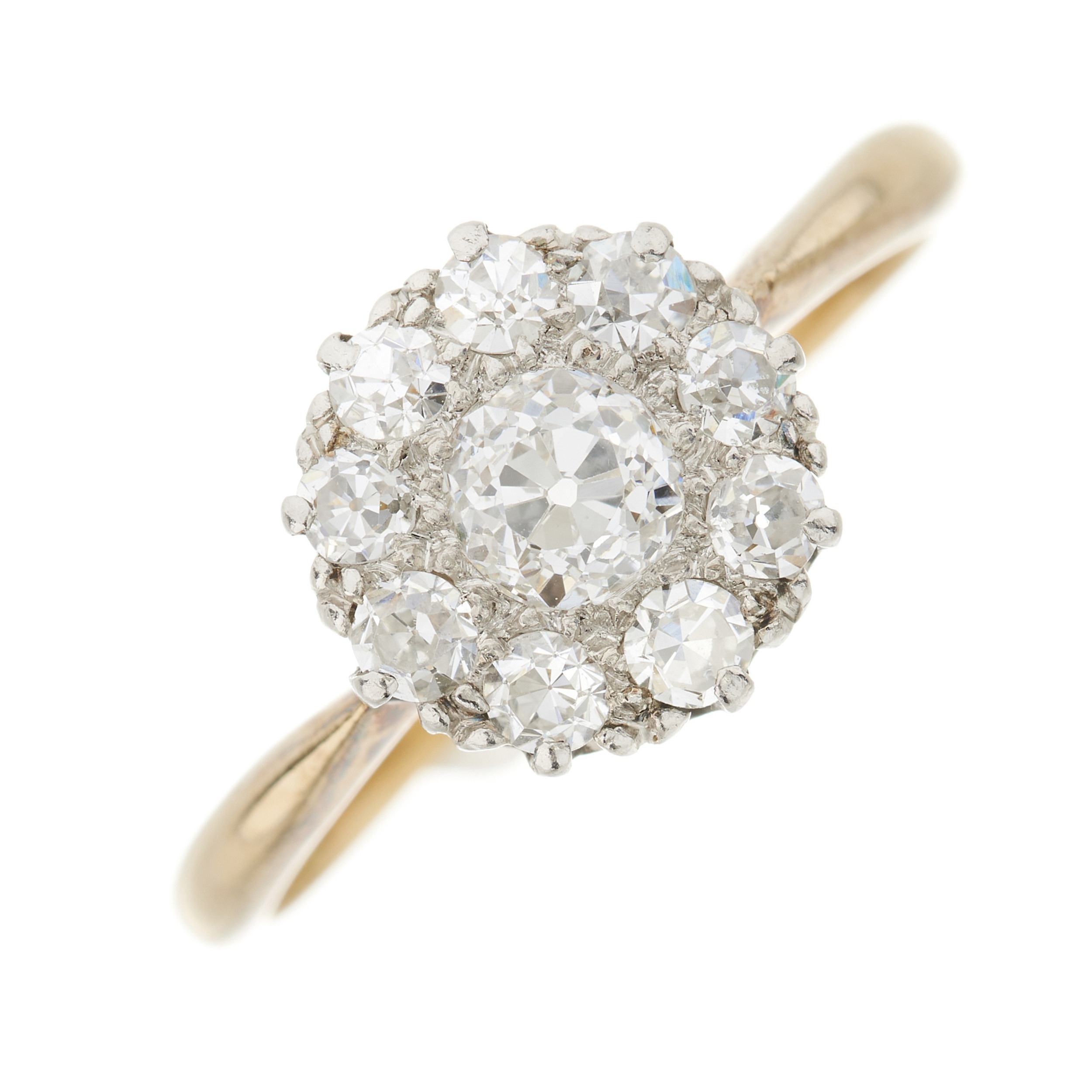 An early 20th century 18ct gold old-cut diamond cluster ring, estimated total diamond weight 0.50ct, H-J colour, VS2-SI2 clarity, band stamped 18ct, ring size L1/2, 2.8g